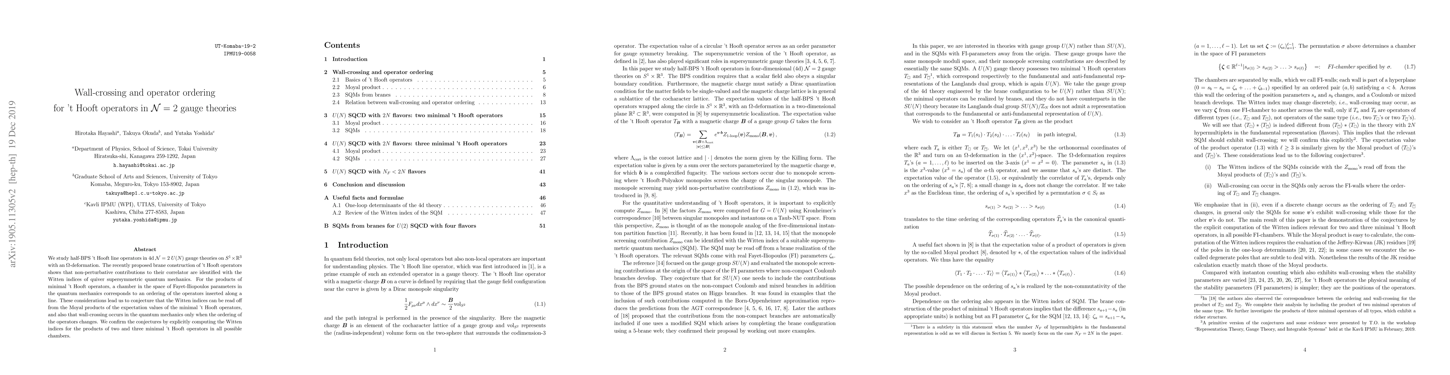 This paper investigates half-BPS 't Hooft line operators in 4d $\mathcal{N}=2$ $U(N)$ gauge theories, proposing that their correlator's non-perturbative contributions correspond to Witten indices of quiver supersymmetric quantum mechanics. The authors conjecture that wall-crossing in the quantum mechanics is tied to operator ordering changes, confirmed through calculations of Witten indices for products of minimal 't Hooft operators.