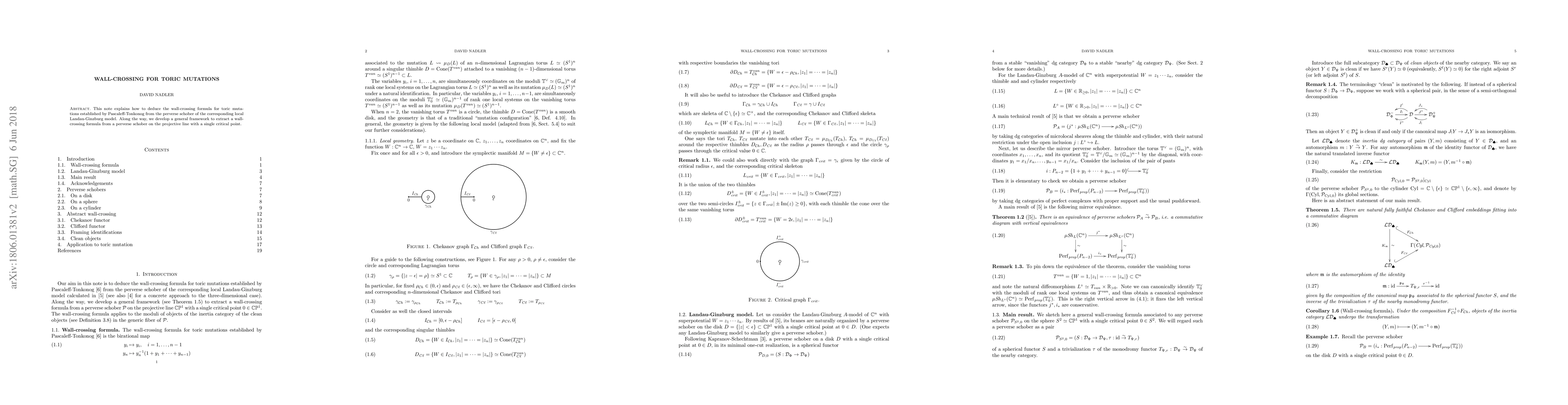 This paper derives the wall-crossing formula for toric mutations using the perverse schoner of a local Landau-Ginzburg model and establishes a general framework for extracting such formulas from perverse schoners on the projective line with a single critical point.