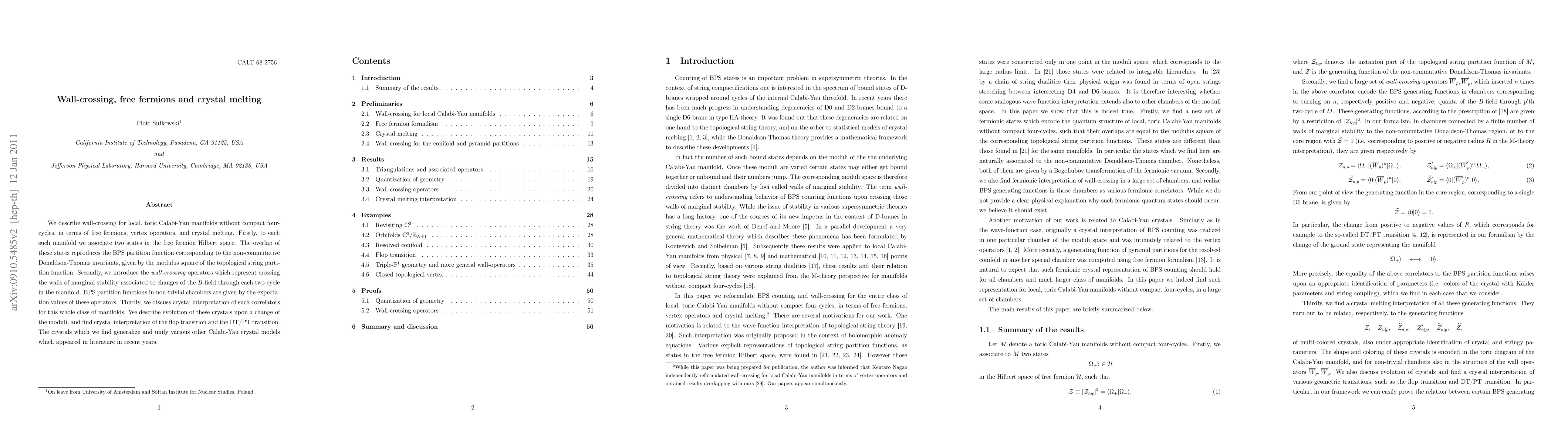 Researchers developed a new framework for understanding wall-crossing in Calabi-Yau manifolds using free fermions and crystal melting, providing insights into BPS partition functions and the flop transition.