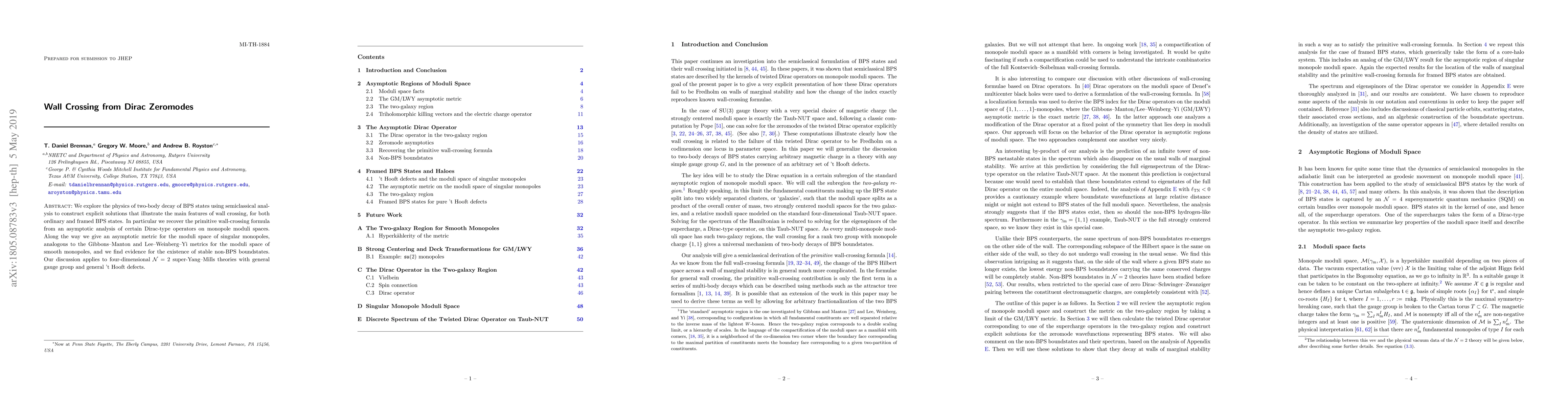 This paper investigates the semiclassical analysis of two-body decay of BPS states, focusing on wall crossing phenomena for both ordinary and framed BPS states, and derives the primitive wall-crossing formula from the asymptotic analysis of Dirac-type operators. It also introduces an asymptotic metric for singular monopole moduli spaces and suggests the existence of stable non-BPS boundstates.