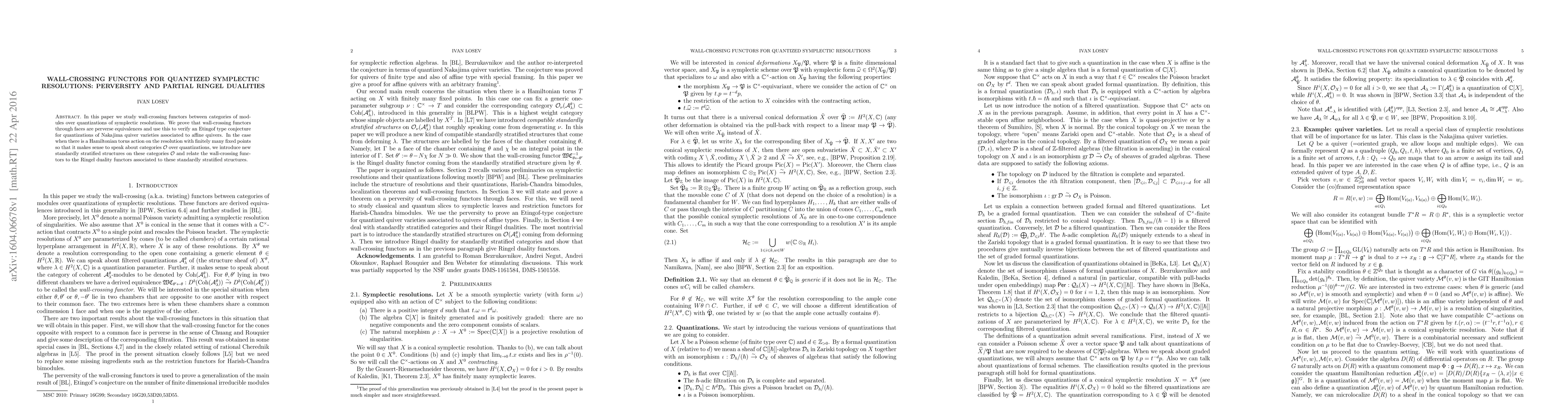 This paper investigates wall-crossing functors in quantized symplectic resolutions, demonstrating they are perverse equivalences. It verifies an Etingof conjecture for Nakajima quiver varieties and introduces new structures on $\mathcal{O}$ categories, relating these functors to Ringel dualities.