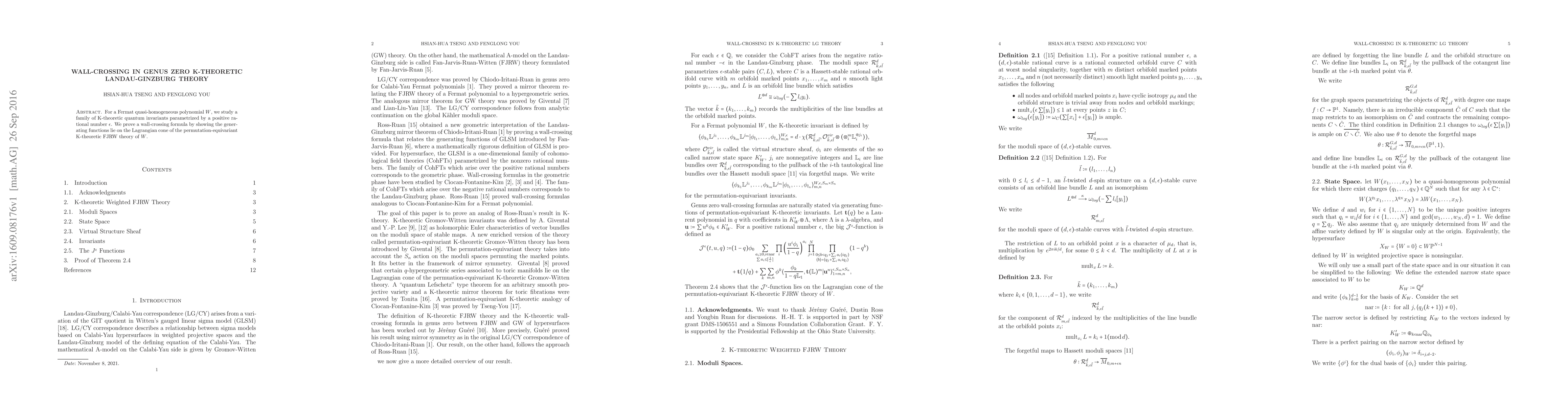 Researchers develop a wall-crossing formula for K-theoretic quantum invariants in genus zero Landau-Ginzburg theory, showing that generating functions lie on the Lagrangian cone of permutation-equivariant FJRW theory.