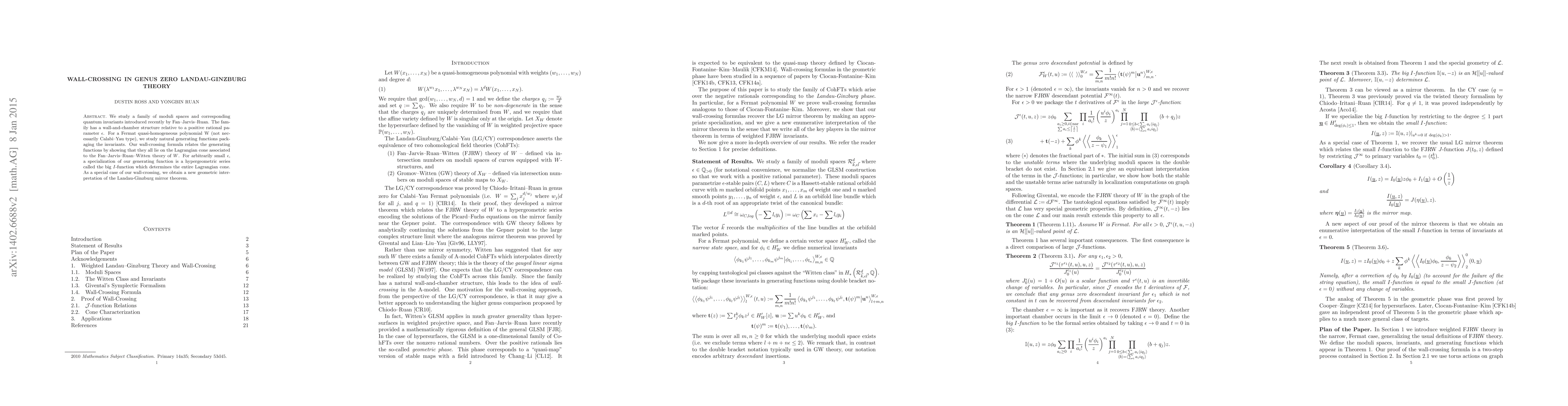This paper investigates genus zero wall-crossing phenomena in Landau-Ginzburg theory for a family of moduli spaces defined by Fan-Farvis-Ruan, revealing a wall-crossing formula that relates generating functions of invariants. The formula shows these functions lie on a Lagrangian cone, with the big I-function determining the cone for small parameters, providing a new geometric interpretation of the Landau-Ginzburg mirror theorem.