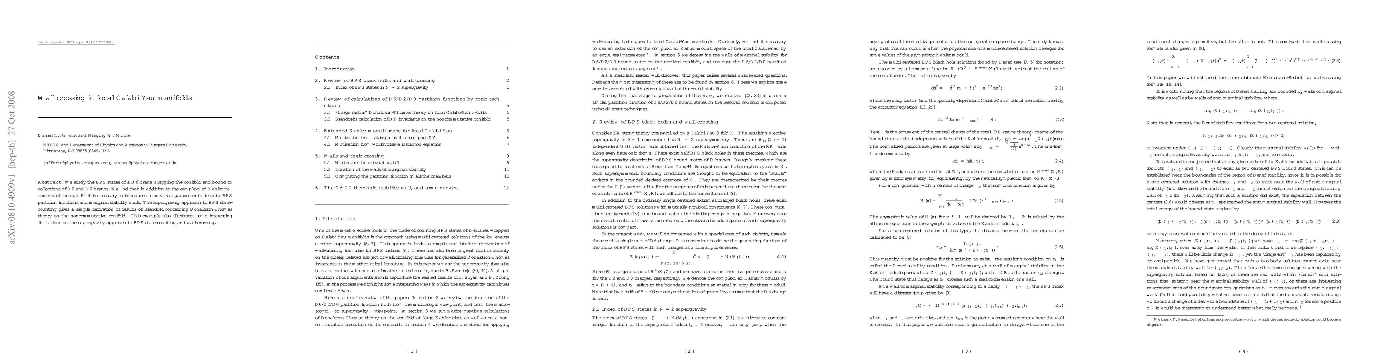 We study the BPS states of a D6-brane wrapping the conifold and bound to collections of D2 and D0 branes. We find that in addition to the complexified Kahler parameter of the rigid sphere it is necessary to introduce an extra real parameter to describe BPS partition functions and marginal stability walls. The supergravity approach to BPS state-counting gives a simple derivation of results of Szendroi concerning Donaldson-Thomas theory on the noncommutative conifold. This example also illustrates some interesting limitations on the supergravity approach to BPS state-counting and wall-crossing.