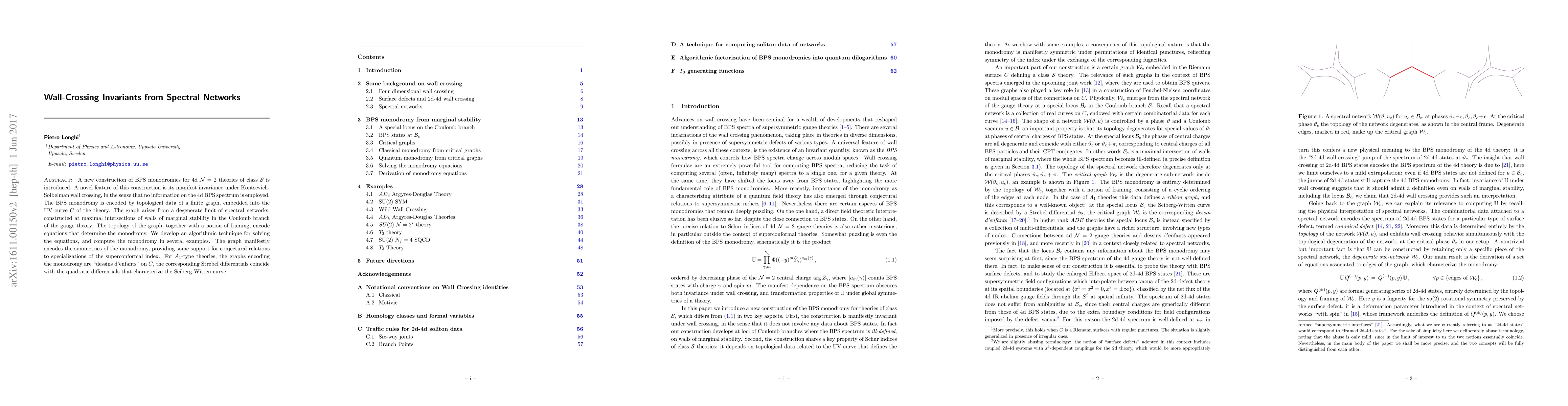 A new construction of BPS monodromies for 4d ${\mathcal N}=2$ theories of class S is introduced. A novel feature of this construction is its manifest invariance under Kontsevich-Soibelman wall crossing, in the sense that no information on the 4d BPS spectrum is employed. The BPS monodromy is encoded by topological data of a finite graph, embedded into the UV curve $C$ of the theory. The graph arises from a degenerate limit of spectral networks, constructed at maximal intersections of walls of marginal stability in the Coulomb branch of the gauge theory. The topology of the graph, together with a notion of framing, encode equations that determine the monodromy. We develop an algorithmic technique for solving the equations, and compute the monodromy in several examples. The graph manifestly encodes the symmetries of the monodromy, providing some support for conjectural relations to specializations of the superconformal index. For $A_1$-type theories, the graphs encoding the monodromy are "dessins d'enfants" on $C$, the corresponding Strebel differentials coincide with the quadratic differentials that characterize the Seiberg-Witten curve.