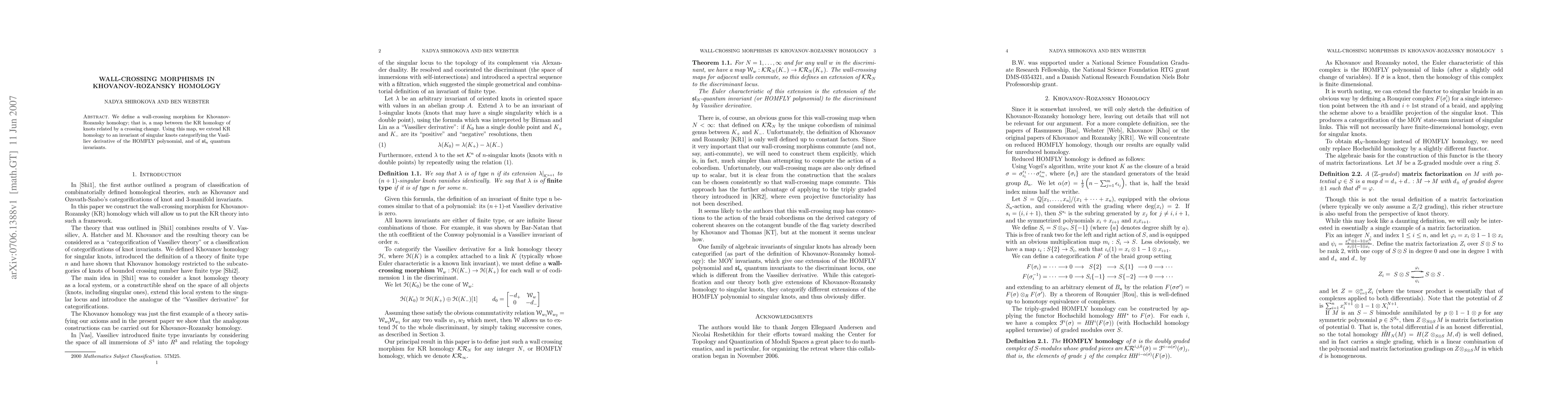 This paper defines a wall-crossing morphism for Khovanov-Rozansky homology, enabling a map between the KR homology of knots altered by crossing changes. It extends KR homology to an invariant for singular knots, categorifying Vassiliev derivatives and $\mathfrak{sl}_n$ quantum invariants.