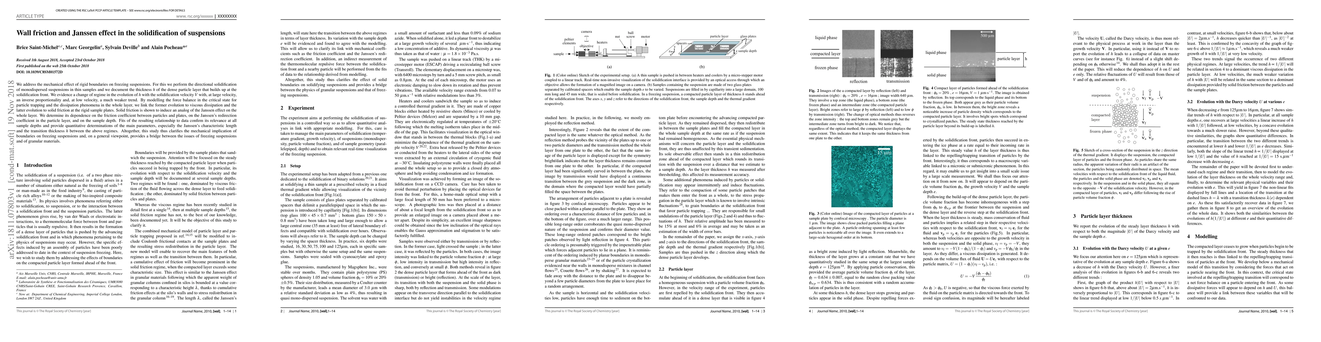 This paper investigates the mechanical effects of rigid boundaries on the freezing of suspensions, finding a regime change in particle layer thickness with solidification velocity. It reveals an analog of the Janssen effect due to solid friction, linking it to parameters like the friction coefficient and Janssen's redirection coefficient, and provides quantitative insights into these interactions.