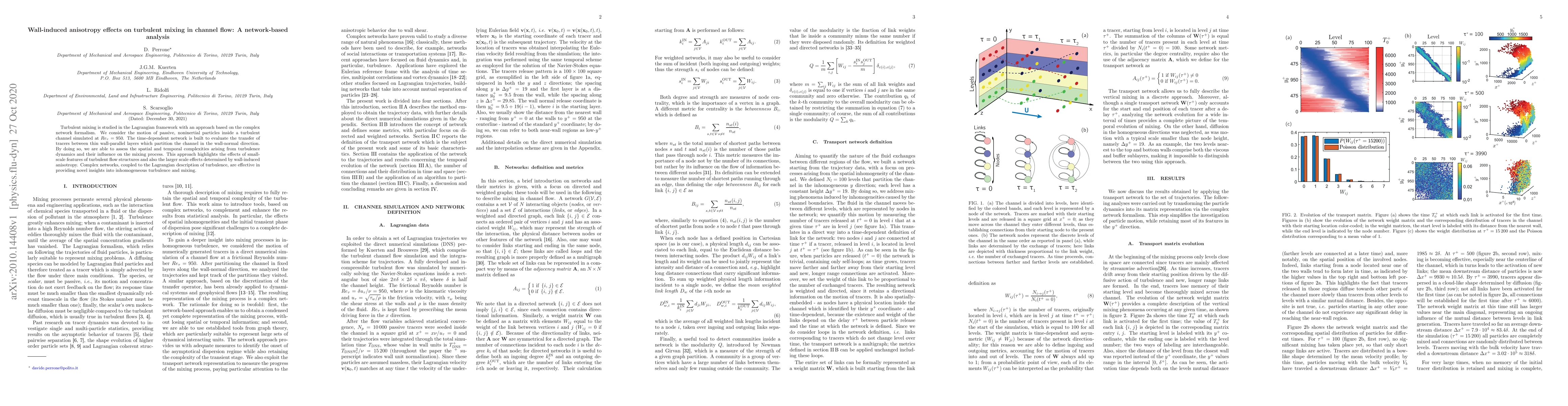 This paper employs complex network analysis within a Lagrangian framework to study turbulent mixing in channel flow at $Re_{\tau} = 950$. It reveals how wall-induced anisotropy influences mixing by examining the transfer of tracers between wall-parallel layers, highlighting both small-scale and large-scale turbulence dynamics.