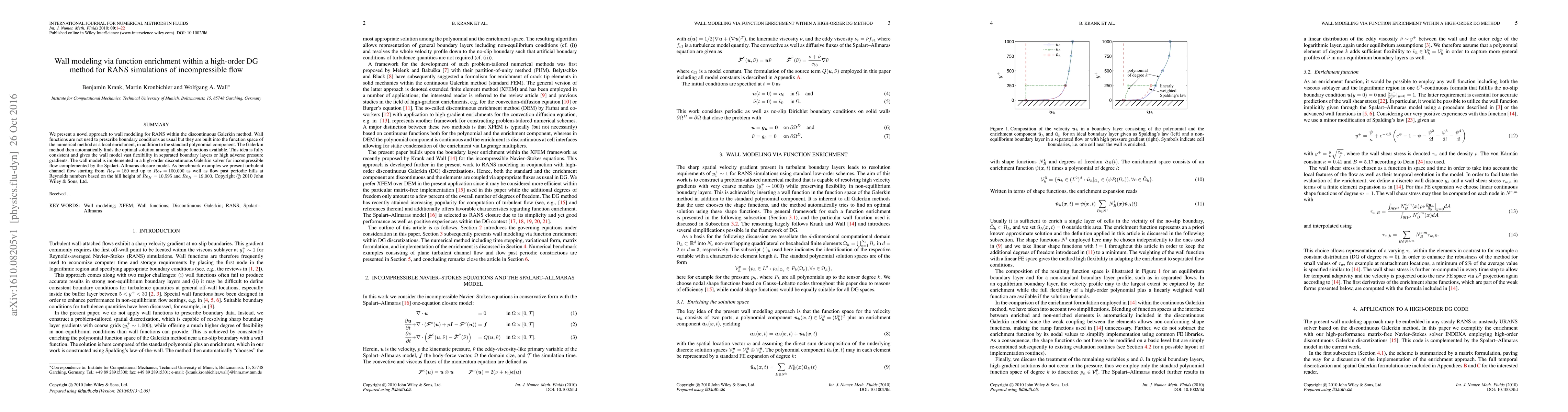 This paper introduces a novel wall modeling technique within a high-order discontinuous Galerkin method for RANS simulations, where wall functions are integrated into the function space as local enrichments instead of traditional boundary conditions. This approach provides flexibility in handling complex boundary layers and adverse pressure gradients.