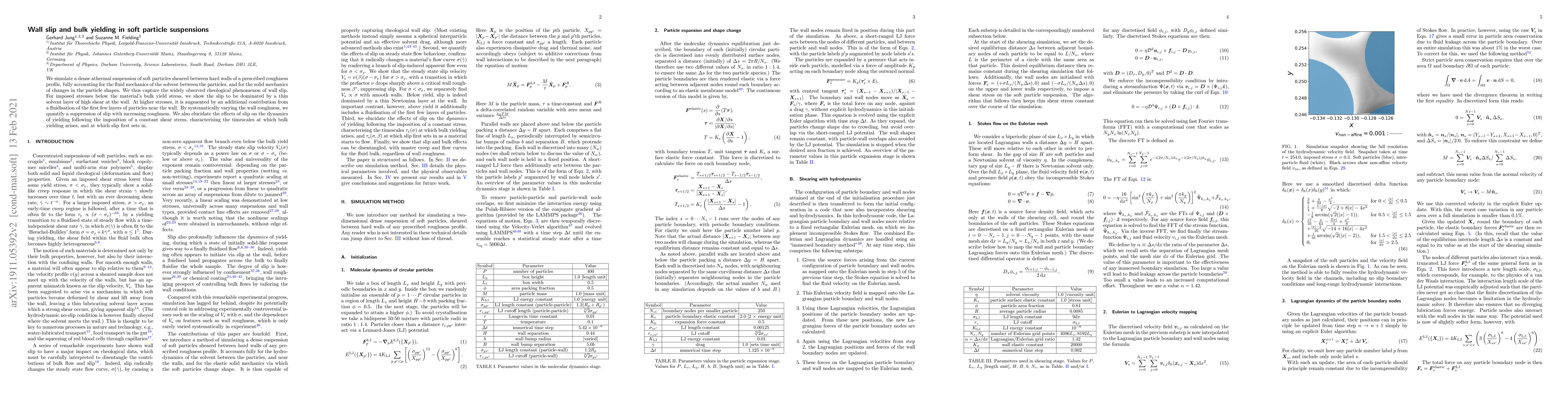 This paper investigates the elastohydrodynamic wall slip and bulk yielding in dense suspensions of soft particles under shear using detailed fluid and solid mechanics simulations. It reveals that wall slip is primarily due to a thin solvent layer at low stresses, while higher stresses induce particle fluidization near the wall, and increasing wall roughness suppresses slip.