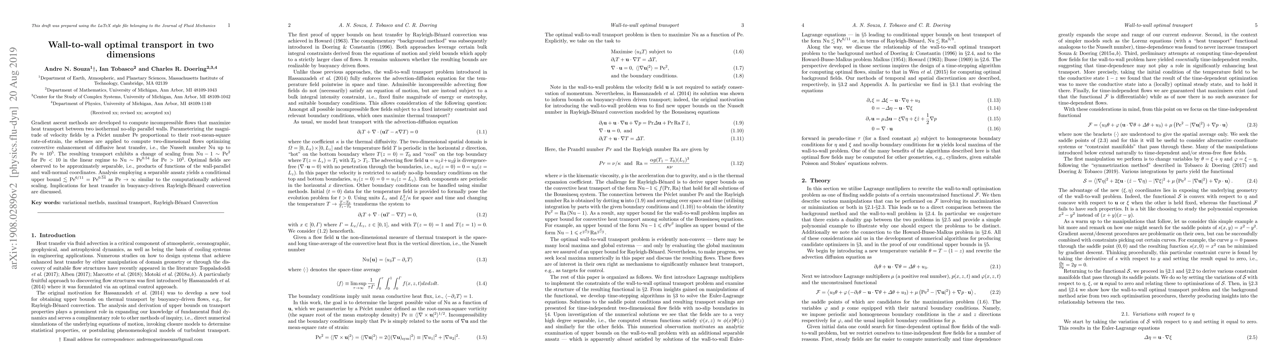 This paper develops a method to optimize heat transport between two parallel walls using gradient ascent methods, finding that optimal flows exhibit scaling behaviors similar to those in buoyancy-driven convection.