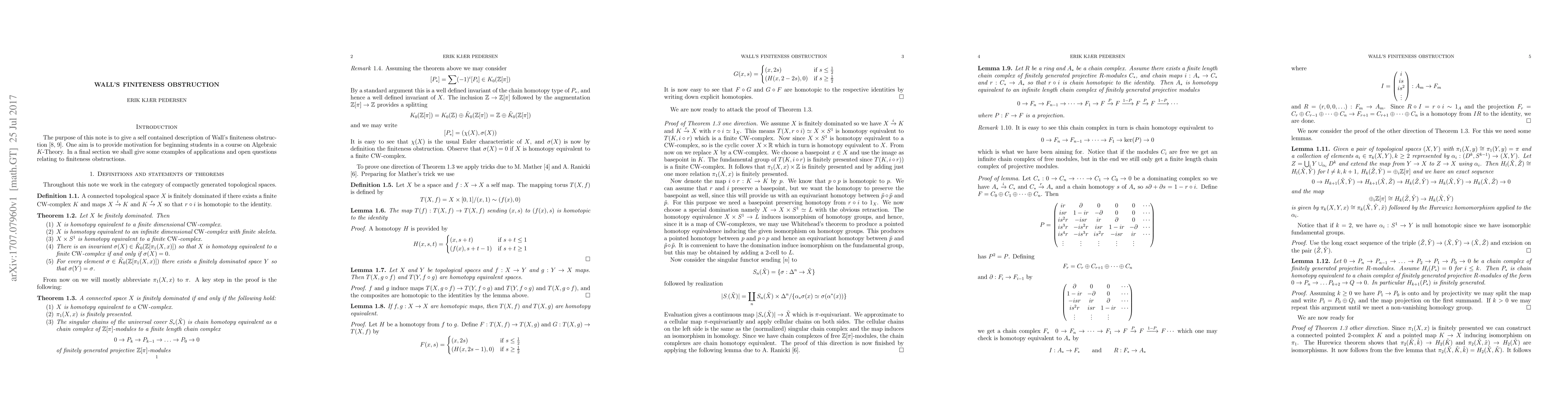 The purpose of this note is to give a self contained description of Walls finiteness obstruction.