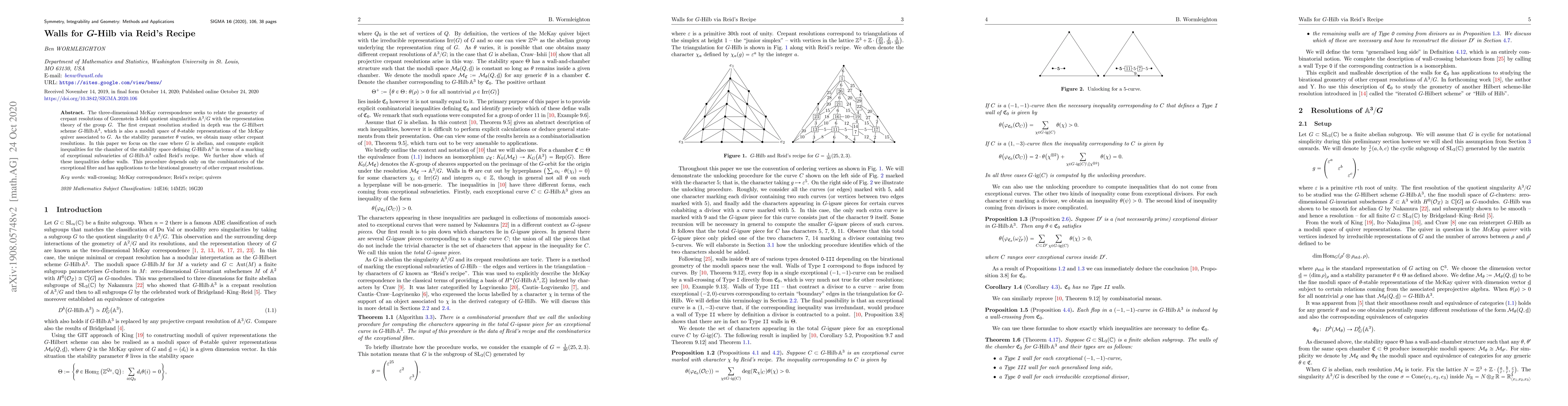 The three-dimensional McKay correspondence seeks to relate the geometry of crepant resolutions of Gorenstein $3$-fold quotient singularities $\mathbb{A}^3/G$ with the representation theory of the group $G$. The first crepant resolution studied in depth was the $G$-Hilbert scheme $G\text{-Hilb}\,\mathbb{A}^3$, which is also a moduli space of $\theta$-stable representations of the McKay quiver associated to $G$. As the stability parameter $\theta$ varies, we obtain many other crepant resolutions. In this paper we focus on the case where $G$ is abelian, and compute explicit inequalities for the chamber of the stability space defining $G\text{-Hilb}\,\mathbb{A}^3$ in terms of a marking of exceptional subvarieties of $G\text{-Hilb}\,\mathbb{A}^3$ called Reid's recipe. We further show which of these inequalities define walls. This procedure depends only on the combinatorics of the exceptional fibre and has applications to the birational geometry of other crepant resolutions.