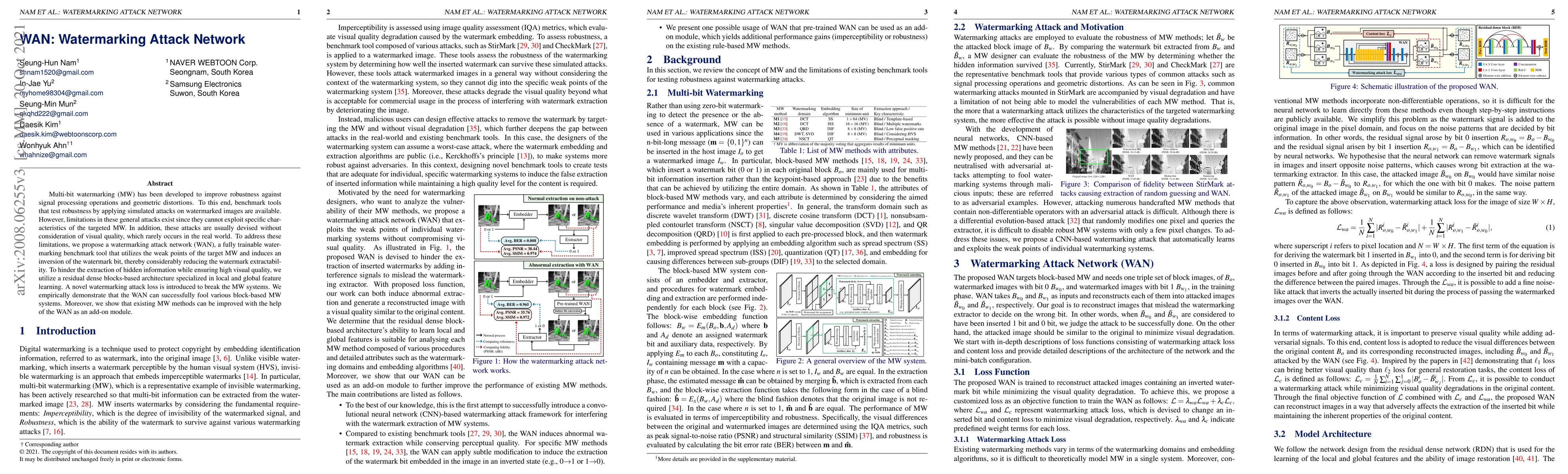 Multi-bit watermarking (MW) has been developed to improve robustness against signal processing operations and geometric distortions. To this end, benchmark tools that test robustness by applying simulated attacks on watermarked images are available. However, limitations in these general attacks exist since they cannot exploit specific characteristics of the targeted MW. In addition, these attacks are usually devised without consideration of visual quality, which rarely occurs in the real world. To address these limitations, we propose a watermarking attack network (WAN), a fully trainable watermarking benchmark tool that utilizes the weak points of the target MW and induces an inversion of the watermark bit, thereby considerably reducing the watermark extractability. To hinder the extraction of hidden information while ensuring high visual quality, we utilize a residual dense blocks-based architecture specialized in local and global feature learning. A novel watermarking attack loss is introduced to break the MW systems. We empirically demonstrate that the WAN can successfully fool various block-based MW systems. Moreover, we show that existing MW methods can be improved with the help of the WAN as an add-on module.