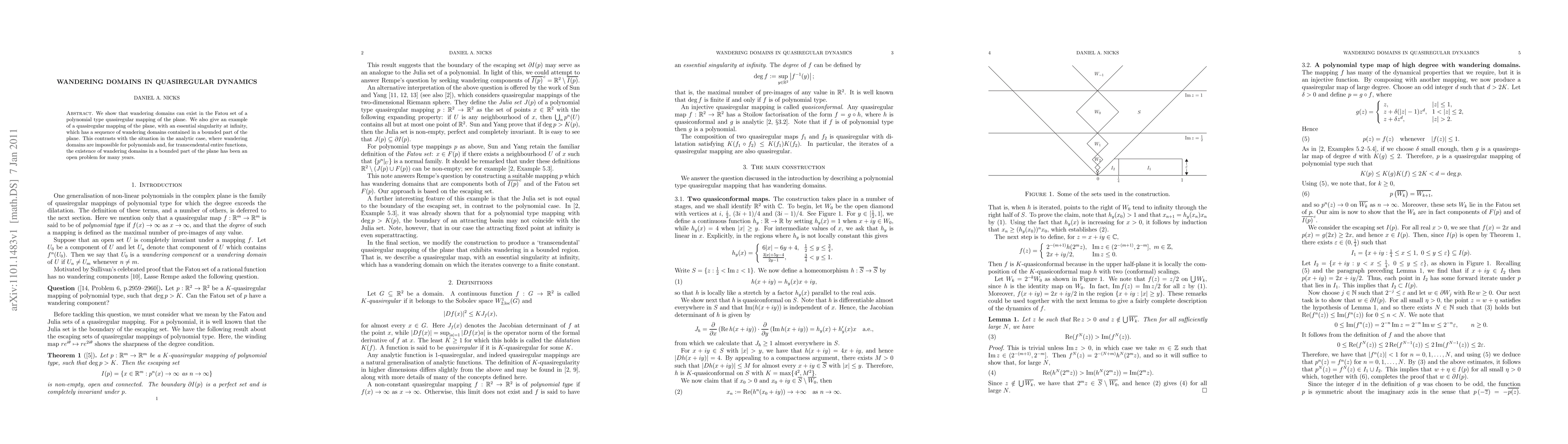 This paper demonstrates that wandering domains can exist within the Fatou set of a quasiregular mapping, contrasting with the analytic case where such domains are impossible for polynomials. It provides an example of a quasiregular mapping with wandering domains in a bounded plane region, resolving an open question regarding transcendental entire functions.