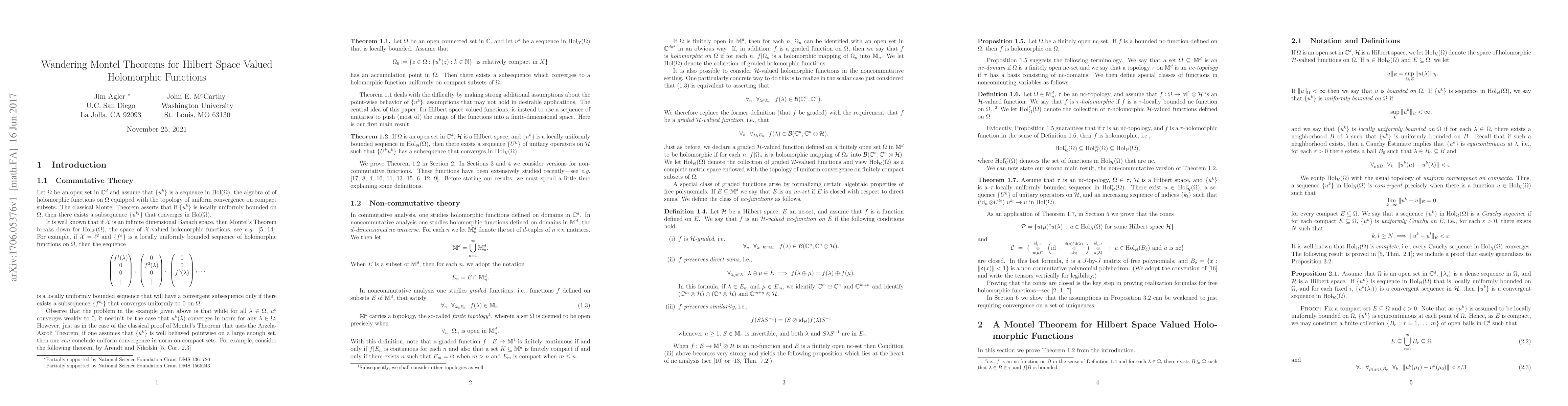Summary: This paper establishes a Montel theorem for holomorphic functions taking values in Hilbert spaces, along with a non-commutative variant, utilizing unitaries to ensure convergence.