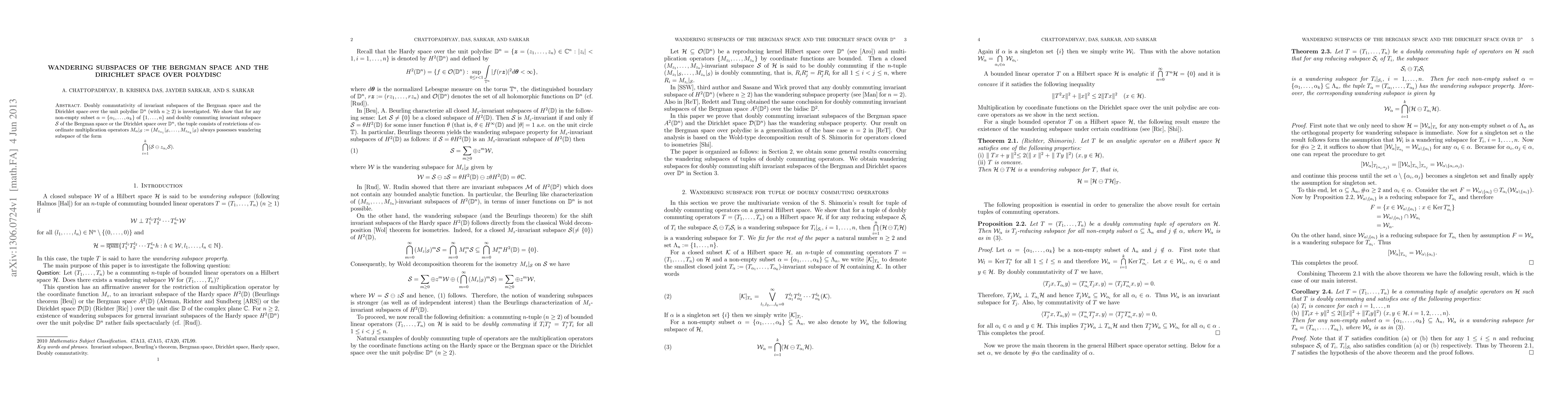 This paper explores doubly commuting invariant subspaces in the Bergman and Dirichlet spaces over the unit polydisc. It demonstrates that for any subset of coordinates and a doubly commuting subspace, there exists a wandering subspace formed by the intersection of subspaces orthogonal to each coordinate restriction.