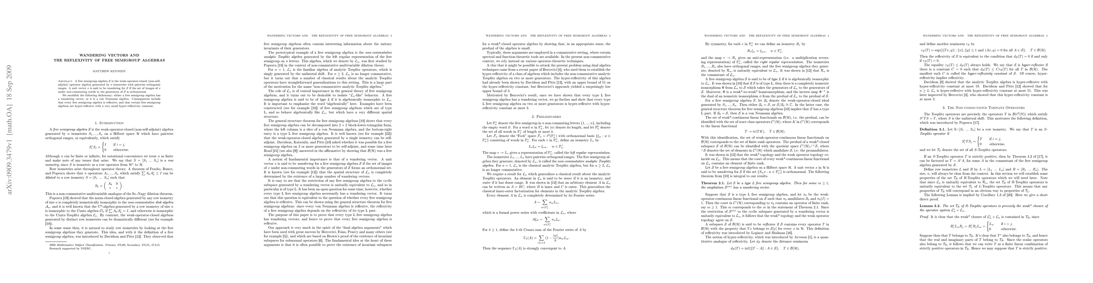 The paper proves that free semigroup algebras either possess a wandering vector or are von Neumann algebras, establishing their reflexivity and showing that some have very small hyper-reflexivity constants.
