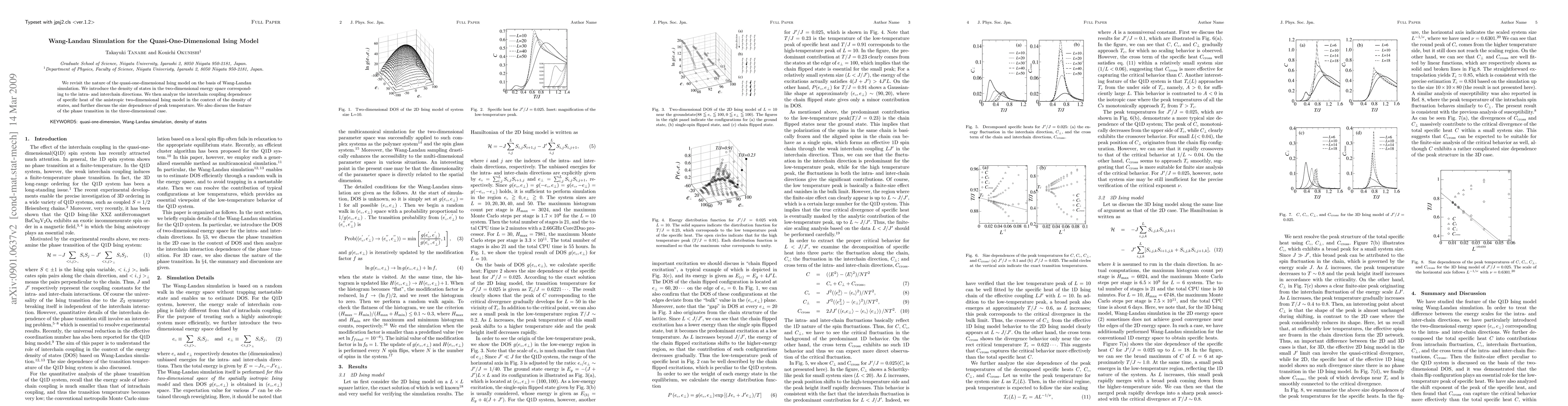 This paper employs Wang-Landau simulation to study the quasi-one-dimensional Ising model, introducing a density of states in the two-dimensional energy space. It analyzes the interchain coupling's effect on the specific heat and discusses the size dependence of peak temperature and the phase transition features in three dimensions.