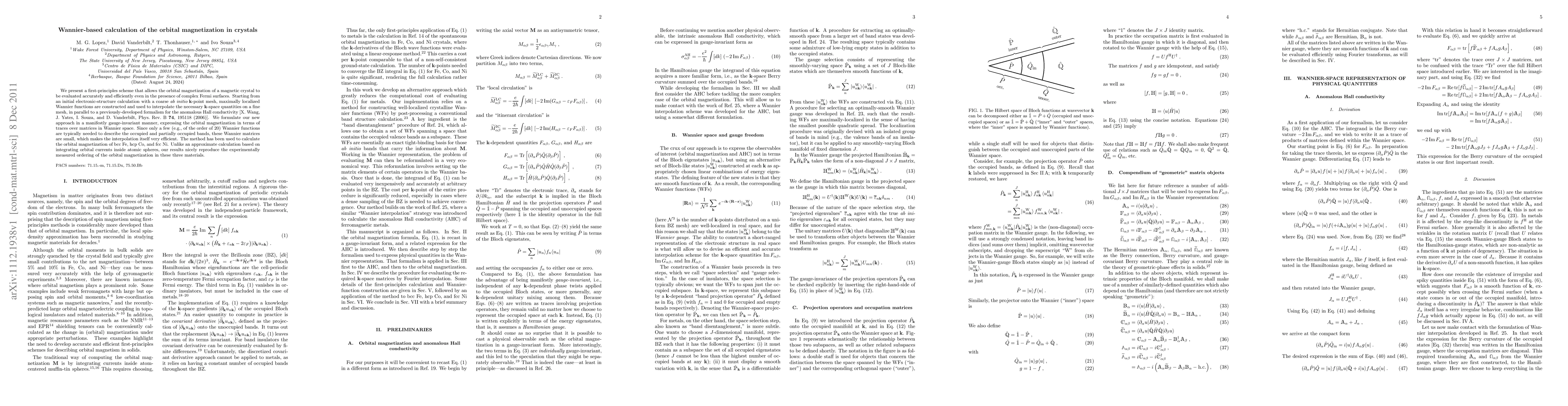 This paper introduces a first-principles method for accurately calculating the orbital magnetization in magnetic crystals using Wannier functions, which efficiently interpolates k-space quantities on a fine mesh. The approach reproduces the experimentally measured ordering of orbital magnetization in bcc Fe, hcp Co, and fcc Ni, outperforming approximate methods based on atomic sphere integration.