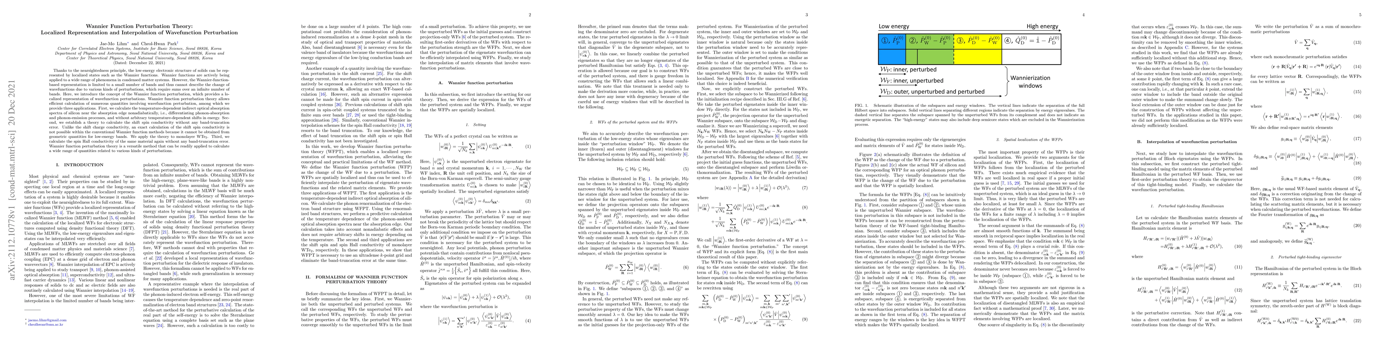 This paper introduces Wannier function perturbation theory, offering a localized representation for wavefunction perturbations. It demonstrates applications in calculating temperature-dependent optical absorption spectra of silicon, shift spin conductivity of monolayer WTe2, and spin Hall conductivity of the same material, all without band-truncation errors.