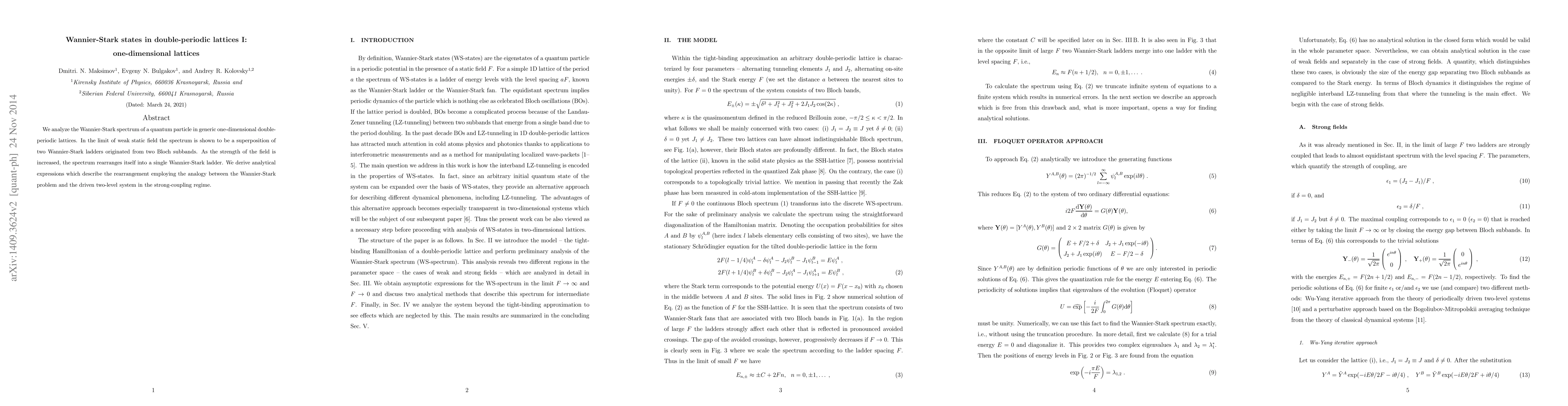 We analyze the Wannier-Stark spectrum of a quantum particle in generic one-dimensional double-periodic lattices. In the limit of weak static field the spectrum is shown to be a superposition of two Wannier-Stark ladders originated from two Bloch subbands. As the strength of the field is increased, the spectrum rearranges itself into a single Wannier-Stark ladder. We derive analytical expressions which describe the rearrangement employing the analogy between the Wannier-Stark problem and the driven two-level system in the strong-coupling regime.