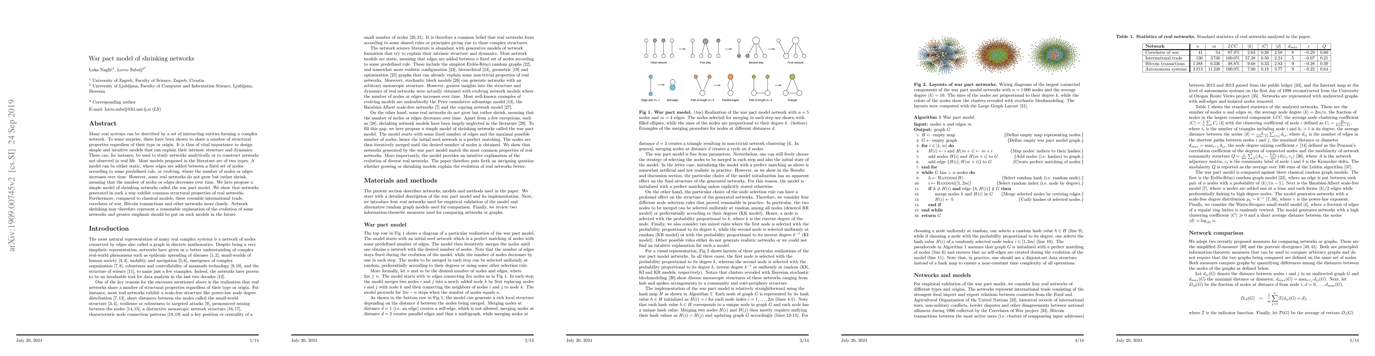 The paper proposes a "war pact model" to simulate shrinking networks, demonstrating that these networks exhibit structural properties similar to real-world networks like international trade and Bitcoin transactions. It suggests that shrinking networks may better explain the evolution of certain networks compared to traditional static or evolving models.