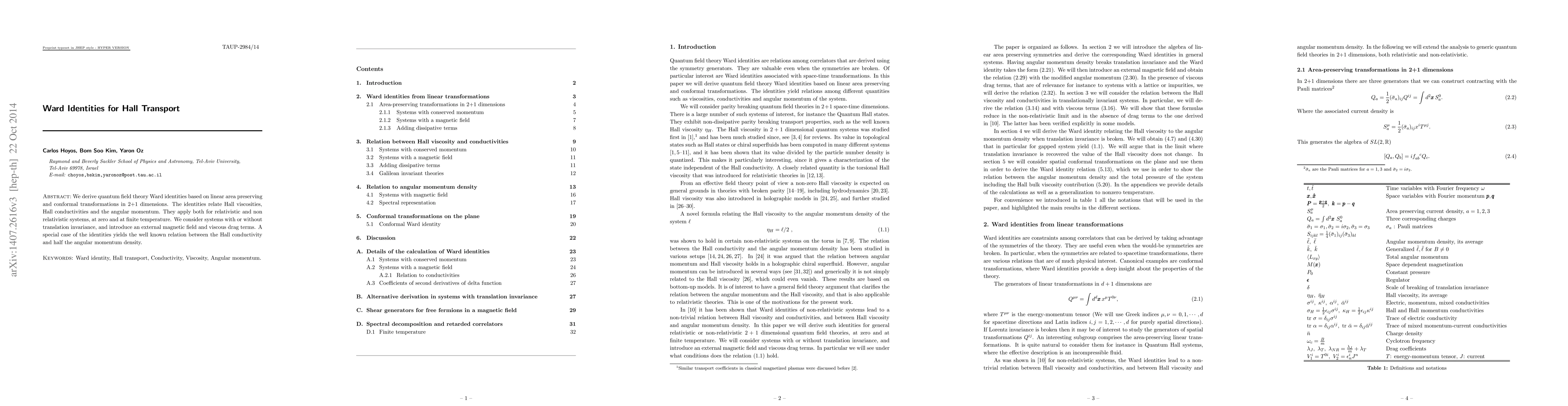 This paper derives quantum field theory Ward identities in 2+1 dimensions that connect Hall viscosities, Hall conductivities, and angular momentum, applicable to both relativistic and non-relativistic systems at various temperatures. The identities also account for systems with or without translation invariance, external magnetic fields, and viscous drag.