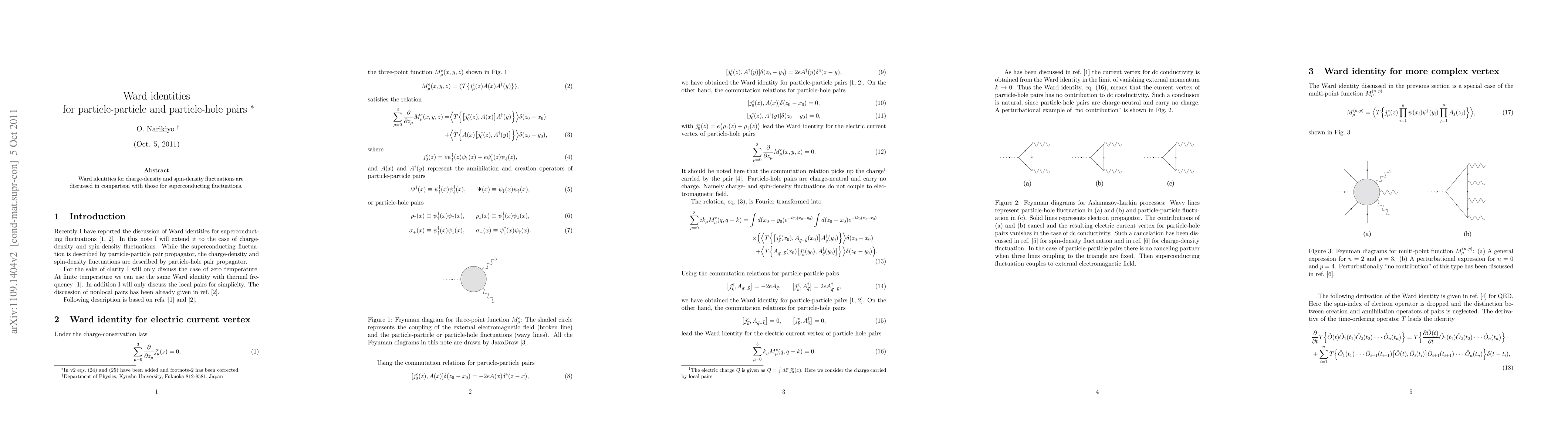 Ward identities for charge-density and spin-density fluctuations are discussed in comparison with those for superconducting fluctuations.