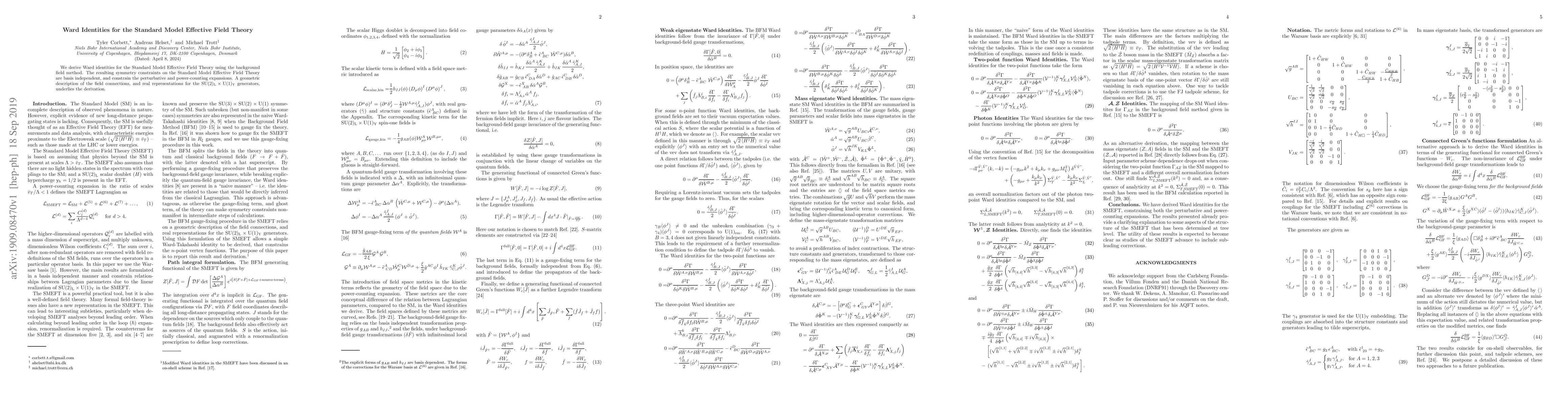This paper derives basis-independent Ward identities for the Standard Model Effective Field Theory using the background field method, providing symmetry constraints on the perturbative and power-counting expansions, underpinned by a geometric description of field connections and real representations for gauge generators.