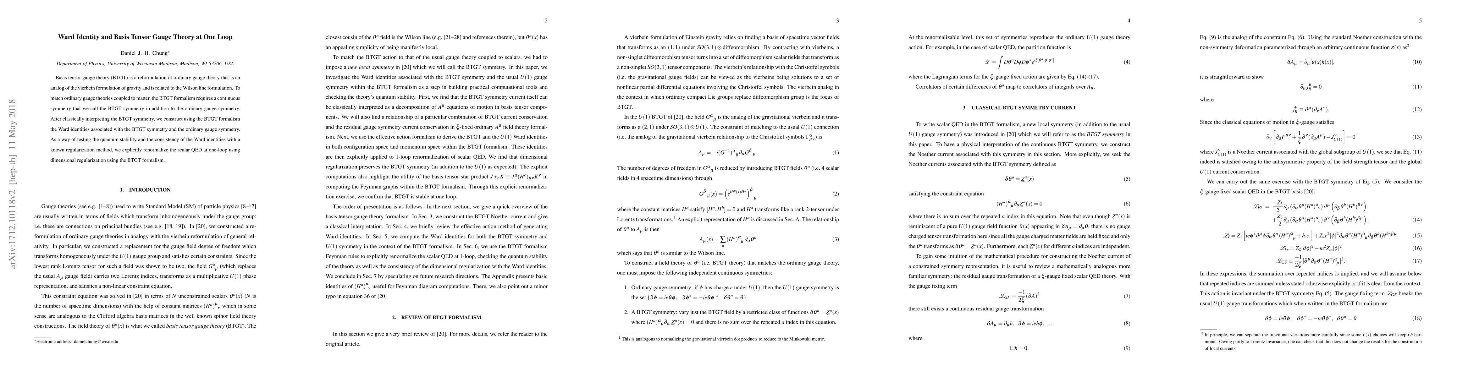 This paper reformulates ordinary gauge theory as basis tensor gauge theory (BTGT), which parallels the vierbein formulation of gravity. The authors derive Ward identities for both BTGT and ordinary gauge symmetries and test their quantum consistency by renormalizing scalar QED at one-loop using dimensional regularization within the BTGT framework.