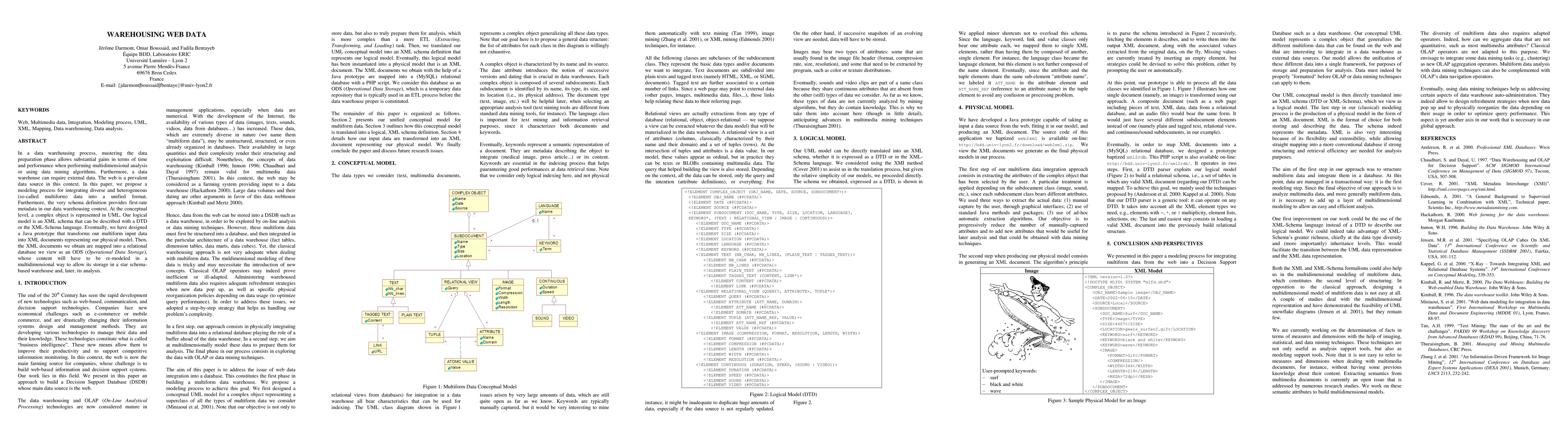 In a data warehousing process, mastering the data preparation phase allows substantial gains in terms of time and performance when performing multidimensional analysis or using data mining algorithms. Furthermore, a data warehouse can require external data. The web is a prevalent data source in this context. In this paper, we propose a modeling process for integrating diverse and heterogeneous (so-called multiform) data into a unified format. Furthermore, the very schema definition provides first-rate metadata in our data warehousing context. At the conceptual level, a complex object is represented in UML. Our logical model is an XML schema that can be described with a DTD or the XML-Schema language. Eventually, we have designed a Java prototype that transforms our multiform input data into XML documents representing our physical model. Then, the XML documents we obtain are mapped into a relational database we view as an ODS (Operational Data Storage), whose content will have to be re-modeled in a multidimensional way to allow its storage in a star schema-based warehouse and, later, its analysis.