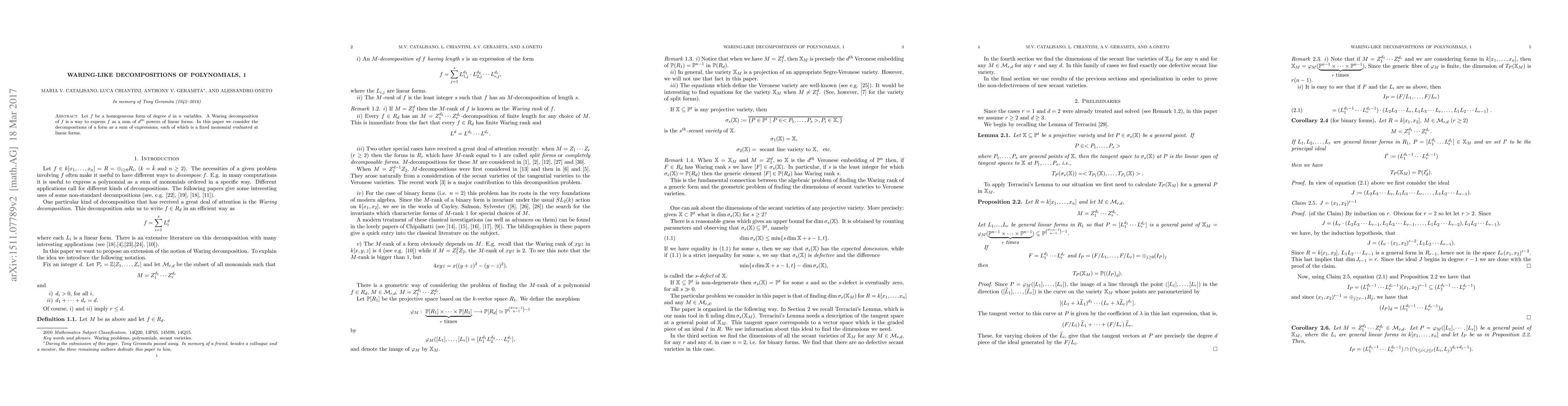 Let $F$ be a homogeneous form of degree $d$ in $n$ variables. A Waring decomposition of $F$ is a way to express $F$ as a sum of $d^{th}$ powers of linear forms. In this paper we consider the decompositions of a form as a sum of expressions, each of which is a fixed monomial evaluated at linear forms.