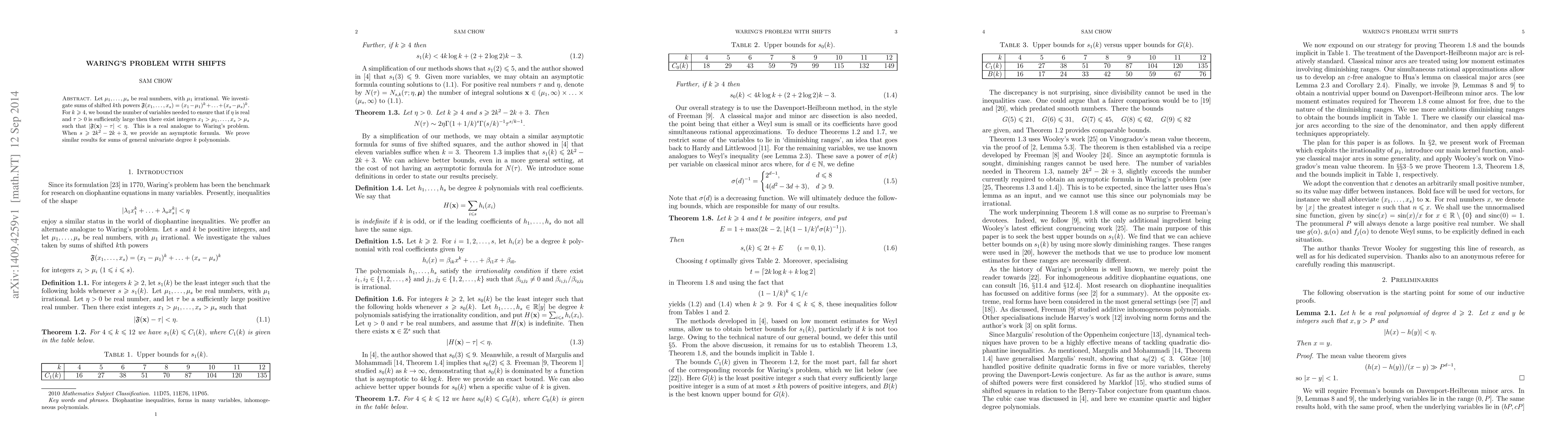 Let $\mu_1, \ldots, \mu_s$ be real numbers, with $\mu_1$ irrational. We investigate sums of shifted $k$th powers $\mathfrak{F}(x_1, \ldots, x_s) = (x_1 - \mu_1)^k + \ldots + (x_s - \mu_s)^k$. For $k \ge 4$, we bound the number of variables needed to ensure that if $\eta$ is real and $\tau > 0$ is sufficiently large then there exist integers $x_1 > \mu_1, \ldots, x_s > \mu_s$ such that $|\mathfrak{F}(\mathbf{x}) - \tau| < \eta$. This is a real analogue to Waring's problem. When $s \ge 2k^2-2k+3$, we provide an asymptotic formula. We prove similar results for sums of general univariate degree $k$ polynomials.