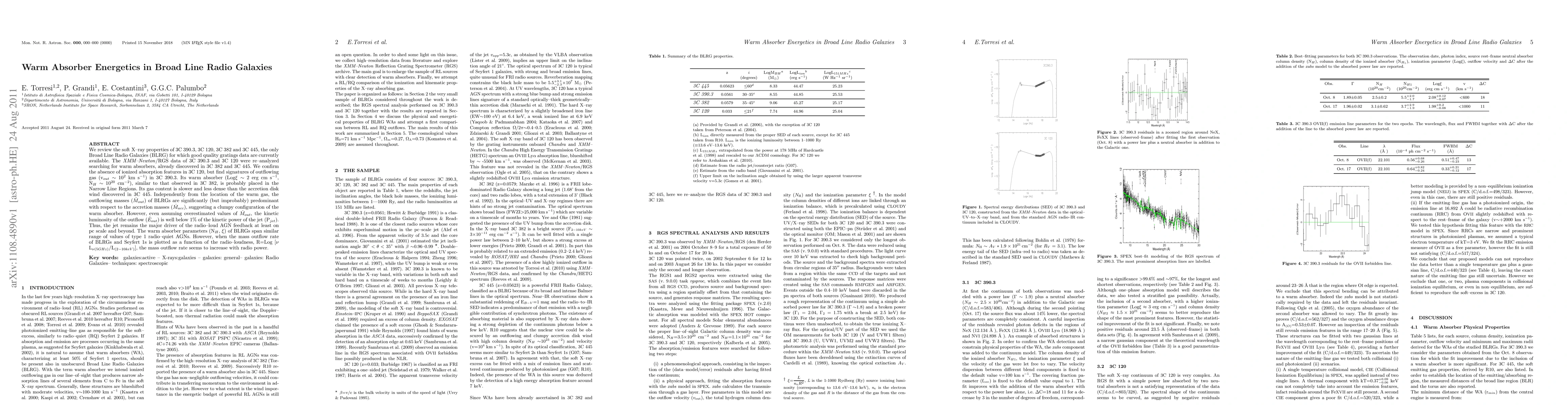 We review the soft X-ray properties of 3C 390.3, 3C 120, 3C 382 and 3C 445, the only Broad Line Radio Galaxies (BLRG) for which good quality gratings data are currently available. The XMM-Newton/RGS data of 3C 390.3 and 3C 120 were re-analyzed searching for warm absorbers, already discovered in 3C 382 and 3C 445. We confirm the absence of ionized absorption features in 3C 120, but find signatures of outflowing gas (v_out \sim 10^2 km s^-1) in 3C 390.3. Its warm absorber (Log\xi \sim 2 erg cm s^-1, N_H\sim 10^20 cm^-2), similar to that observed in 3C 382, is probably placed in the Narrow Line Regions. Its gas content is slower and less dense than the accretion disk wind discovered in 3C 445. Independently from the location of the warm gas, the outflowing masses (\dotM_out) of BLRGs are significantly (but improbably) predominant with respect to the accretion masses (\dotM_acc), suggesting a clumpy configuration of the warm absorber. However, even assuming overestimated values of \dotM_out, the kinetic luminosity of the outflow (\dotE_out) is well below 1% of the kinetic power of the jet (P_jet). Thus, the jet remains the major driver of the radio-loud AGN feedback at least on pc scale and beyond. The warm absorber parameters (N_H, \xi) of BLRGs span similar range of values of type 1 radio-quiet AGNs. However, when the mass outflow rate of BLRGs and Seyfert 1s is plotted as a function of the radio-loudness, R=Log [\nu L_\nu(5GHz)/L_(2-10keV)], the mass outflow rate seems to increase with radio power.