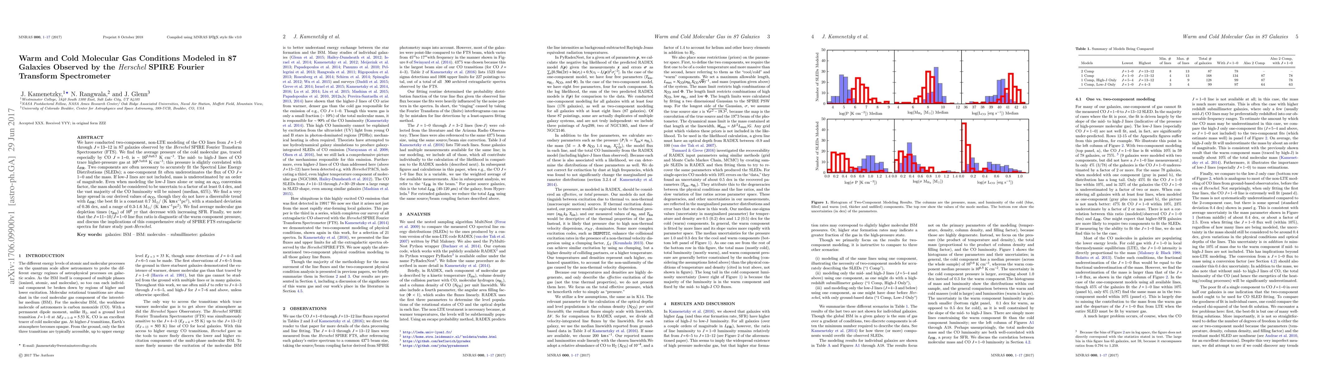 We have conducted two-component, non-LTE modeling of the CO lines from J = 1-0 through J = 13-12 in 87 galaxies observed by the Herschel SPIRE Fourier Transform Spectrometer (FTS). We find the average pressure of the cold molecular gas, traced especially by CO J = 1-0, is $\sim 10^{5.0 \pm 0.5}$ K cm$^{-3}$. The mid- to high-J lines of CO trace higher-pressure gas at $10^{6.5 \pm 0.6}$ K cm$^{-3}$; this pressure is slightly correlated with LFIR. Two components are often necessary to accurately fit the Spectral Line Energy Distributions (SLEDs); a one-component fit often underestimates the flux of CO J = 1-0 and the mass. If low-J lines are not included, mass is underestimated by an order of magnitude. Even when modeling the low-J lines alone or using an $\alpha_{CO}$ conversion factor, the mass should be considered to be uncertain to a factor of at least 0.4 dex, and the vast majority of the CO luminosity will be missed (median, 65%). We find a very large spread in our derived values of $\alpha_{CO}$, though they do not have a discernible trend with LFIR; the best fit is a constant 0.7 M$_{\odot}$/ (K kms$^{-1}$ pc$^2$), with a standard deviation of 0.36 dex, and a range of 0.3-1.6 M$_{\odot}$/ (K kms$^{-1}$ pc$^2$). We find average molecular gas depletion times ($\tau_{dep}$) of $10^8$ yr that decrease with increasing SFR. Finally, we note that the J = 11-10/J = 1-0 line flux ratio is diagnostic of the warm component pressure, and discuss the implications of this comprehensive study of SPIRE FTS extragalactic spectra for future study post-Herschel.