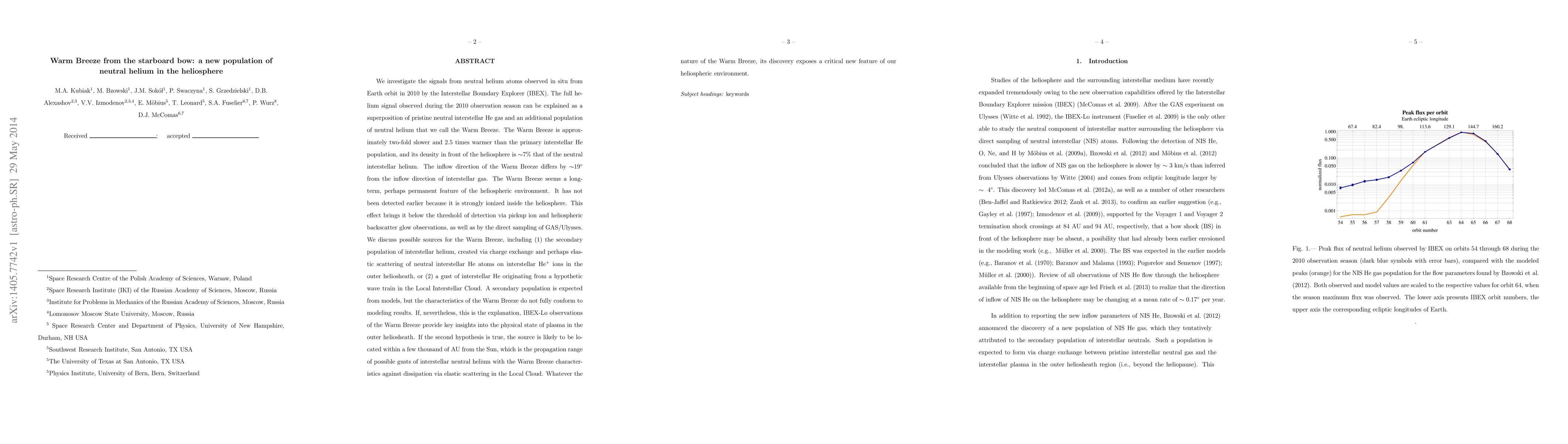 This paper identifies a new population of neutral helium in the heliosphere, termed the Warm Breeze, which is slower and warmer than primary interstellar helium. The Warm Breeze's distinct inflow direction suggests it may originate from secondary interstellar helium or a wave train in the Local Interstellar Cloud, providing insights into the outer heliosheath's plasma state.