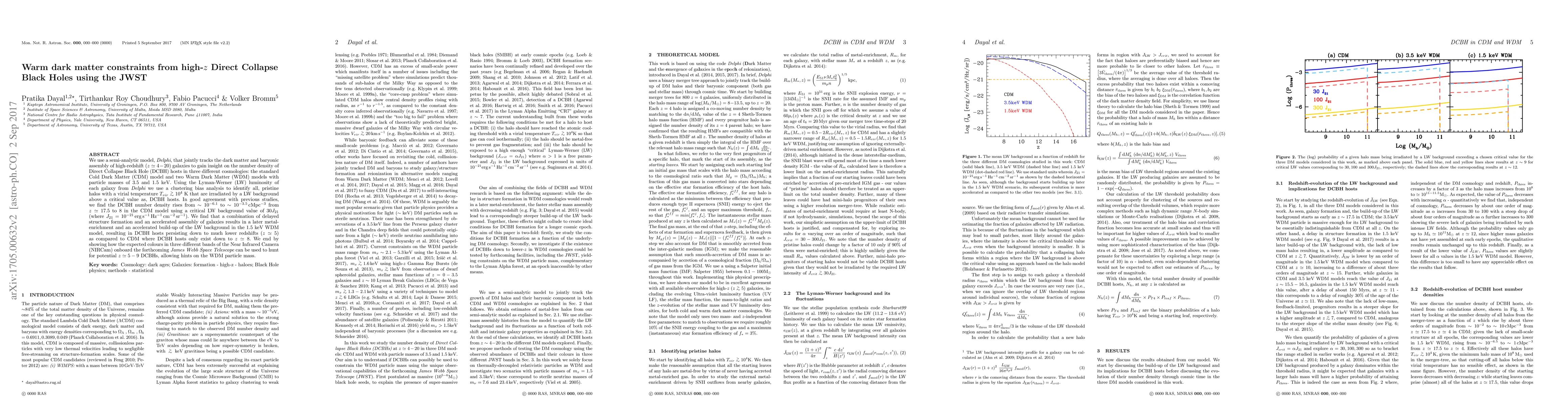 We use a semi-analytic model, ${\it Delphi}$, that jointly tracks the dark matter and baryonic assembly of high-redshift ($z \simeq 4-20$) galaxies to gain insight on the number density of Direct Collapse Black Hole (DCBH) hosts in three different cosmologies: the standard Cold Dark Matter (CDM) model and two Warm Dark Matter (WDM) models with particle masses of 3.5 and 1.5 keV. Obtaining the Lyman-Werner (LW) luminosity of each galaxy from ${\it Delphi}$, we use a clustering bias analysis to identify all, pristine halos with a virial temperature $T_{vir}>=10^4$ K that are irradiated by a LW background above a critical value as, DCBH hosts. In good agreement with previous studies, we find the DCBH number density rises from $\sim10^{-6.1}$ to $\sim 10^{-3.5}\, \mathrm{cMpc^{-3}}$ from $z\simeq 17.5$ to $8$ in the CDM model using a critical LW background value of $30 J_{21}$ (where $J_{21}= 10^{-21} \, {\rm erg\, s^{-1}\, Hz^{-1} \, cm^{-2} \, sr^{-1}}$). We find that a combination of delayed structure formation and an accelerated assembly of galaxies results in a later metal-enrichment and an accelerated build-up of the LW background in the 1.5 keV WDM model, resulting in DCBH hosts persisting down to much lower redshifts ($z \simeq 5$) as compared to CDM where DCBH hosts only exist down to $z \simeq 8$. We end by showing how the expected colours in three different bands of the Near Infrared Camera (NIRCam) onboard the forthcoming James Webb Space Telescope (${\it JWST}$) can be used to hunt for potential $z \simeq 5-9$ DCBHs, allowing hints on the WDM particle mass.