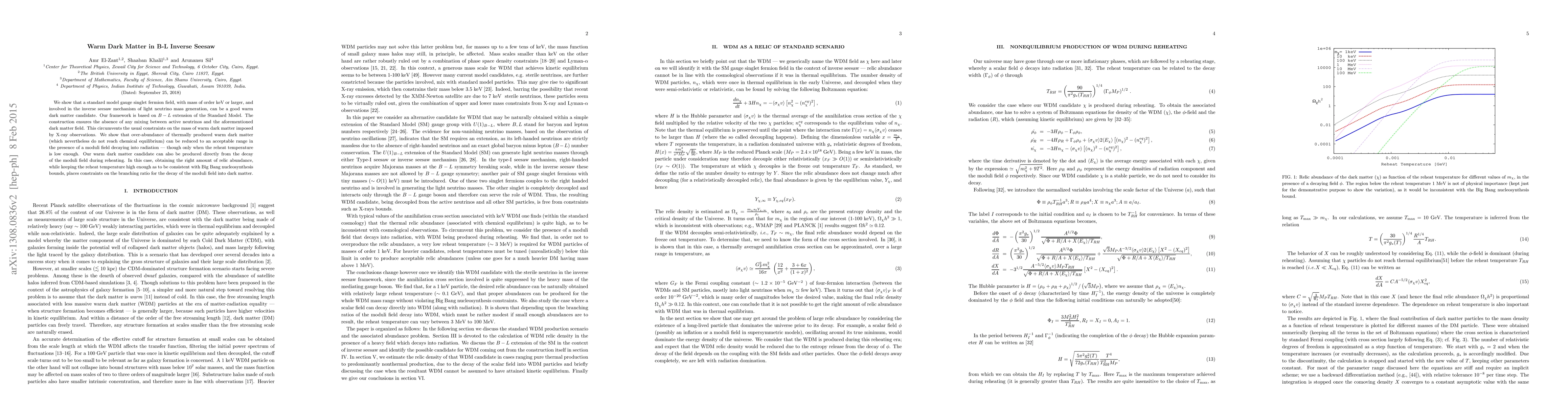 This paper proposes a keV-scale gauge singlet fermion, generated via the B-L inverse seesaw mechanism, as a viable warm dark matter candidate. It avoids constraints from X-ray observations and suggests production mechanisms that align with Big Bang nucleosynthesis, imposing constraints on the moduli field decay branching ratio.