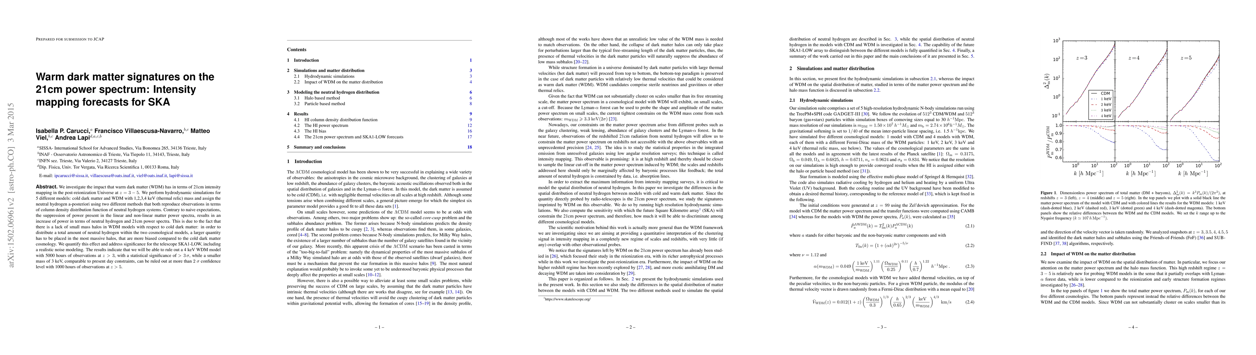 This paper investigates the effects of warm dark matter (WDM) on 21cm intensity mapping at redshifts z = 3-5, finding that WDM suppresses small mass halos, leading to increased power in neutral hydrogen and 21cm power spectra. Forecasts for SKA1-LOW suggest a 4 keV WDM model can be ruled out at >3 sigma with 5000 hours of observation, while a 3 keV model can be constrained at >2 sigma with 1000 hours of observation.