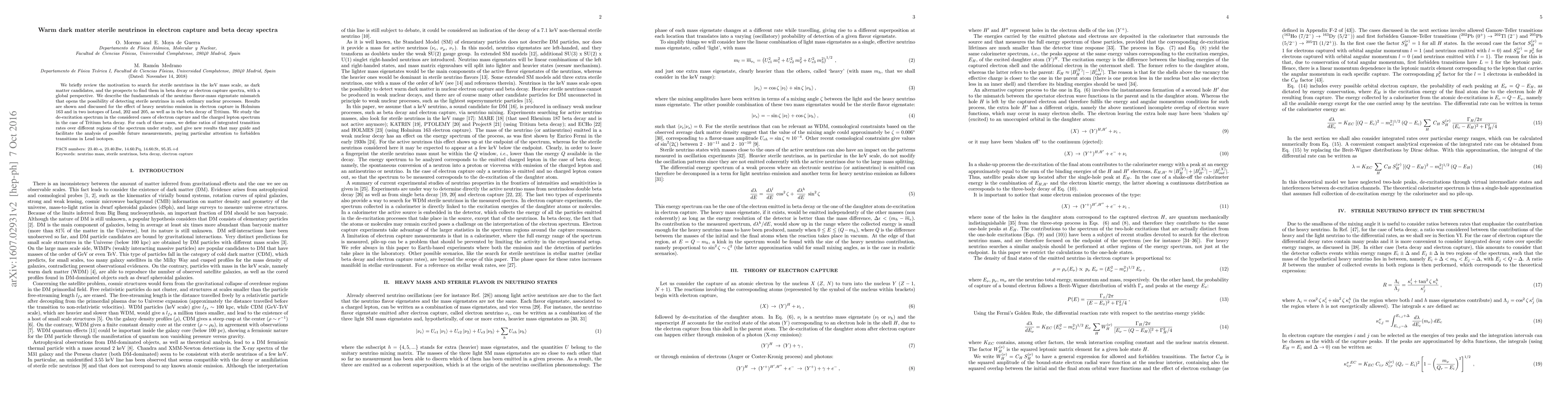 This paper reviews the potential of detecting sterile neutrinos, which are considered as warm dark matter candidates, through their emission in electron capture and beta decay processes. It focuses on the impact of heavy neutrino emission in Holmium 163, Lead 202, Lead 205, and Tritium, providing detailed analysis of de-excitation and charged lepton spectra to guide future experimental measurements.