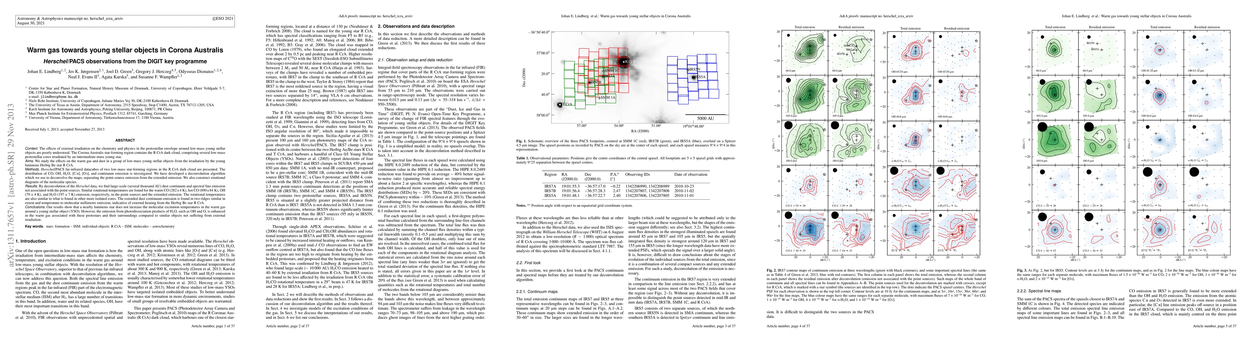This study investigates the effects of external irradiation from the Herbig Be star R CrA on the warm gas and dust in low-mass young stellar objects in the Corona Australis region using Herschel/PACS data. The analysis reveals that while the molecular excitation temperatures remain similar, the emission from photodissociation products like OH and O is enhanced in the irradiated regions.