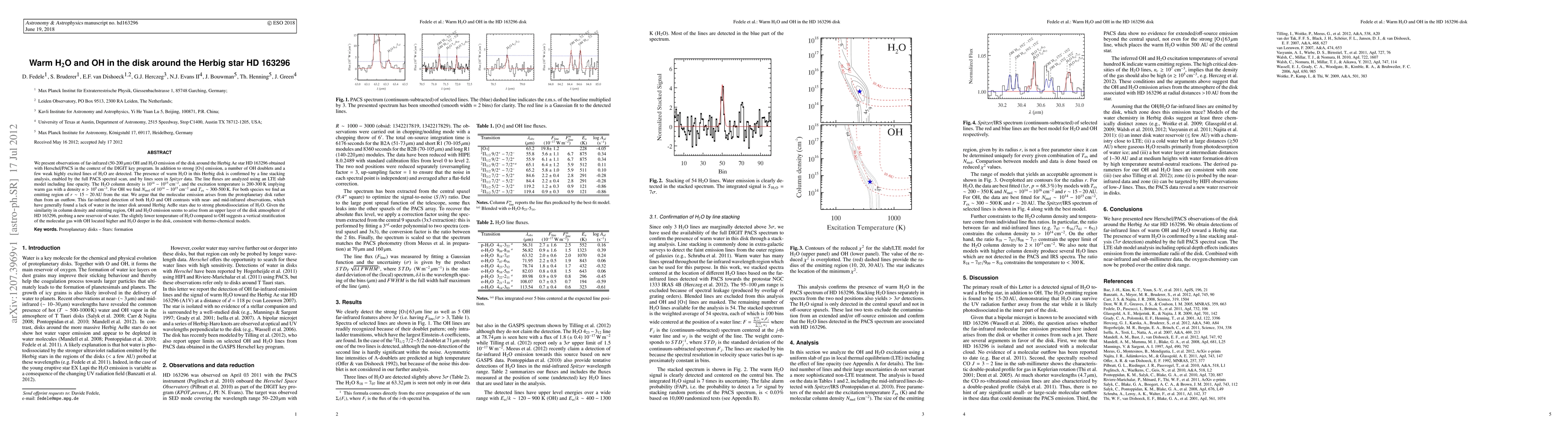 This study detects warm water (H2O) and hydroxyl (OH) emissions in the disk around a Herbig star, revealing a new reservoir of water and challenging previous observations that found water only at outer disk regions. The findings suggest a vertical stratification of molecular gas within the disk.