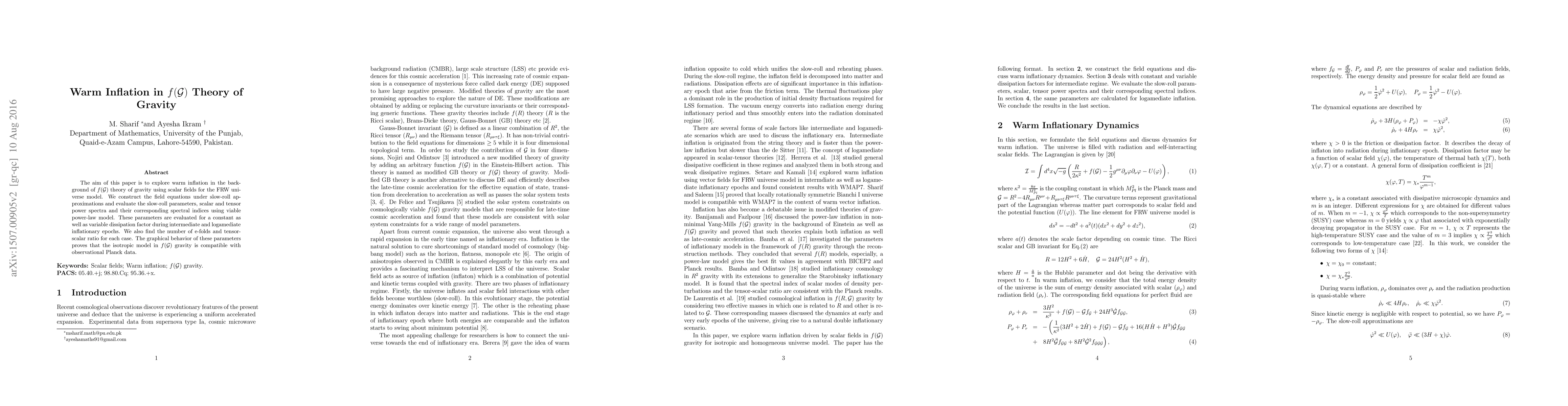 This paper investigates warm inflation within the $f(\mathcal{G})$ theory of gravity, employing scalar fields in a FRW universe. It evaluates slow-roll parameters, power spectra, and spectral indices under both constant and variable dissipation factors, finding compatibility with observational data from Planck.