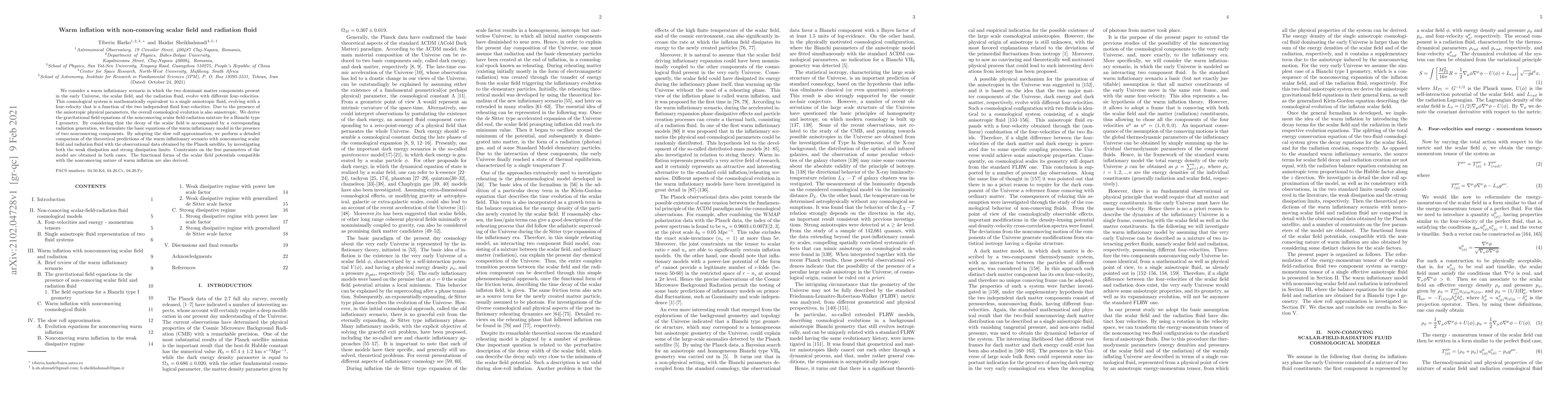 This paper explores a warm inflationary model where a non-comoving scalar field and radiation fluid evolve with distinct four-velocities, leading to an anisotropic cosmological evolution. The study derives gravitational field equations for a Bianchi type I geometry and compares theoretical predictions with observational data from the Planck satellite, deriving constraints on the model's parameters for both weak and strong dissipation scenarios.