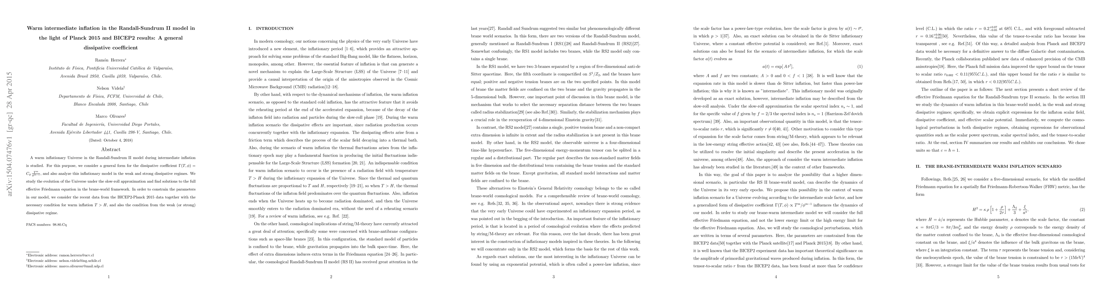 This paper studies a warm inflationary scenario within the Randall-Sundrum II model during intermediate inflation, using a general form for the dissipative coefficient. It examines the model's behavior under both weak and strong dissipative regimes and constrains its parameters with BICEP2-Planck 2015 data, alongside conditions for warm inflation and dissipative regimes.