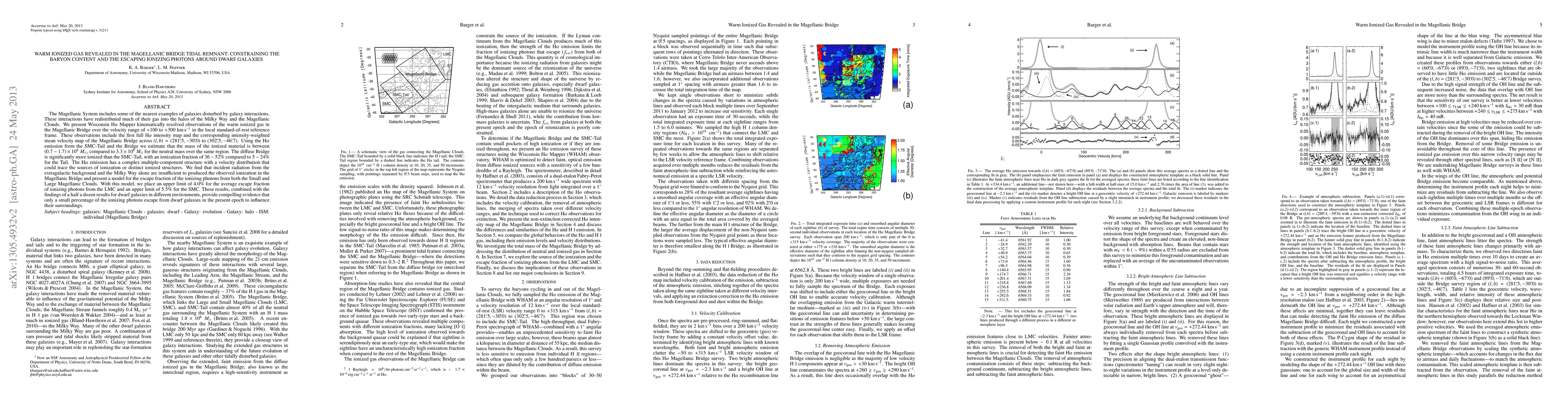 This study reveals the warm ionized gas in the Magellanic Bridge using H-alpha observations, finding a significant ionization fraction and estimating the mass of ionized material. It suggests that only a small fraction of ionizing photons escape from dwarf galaxies, impacting their surroundings minimally.
