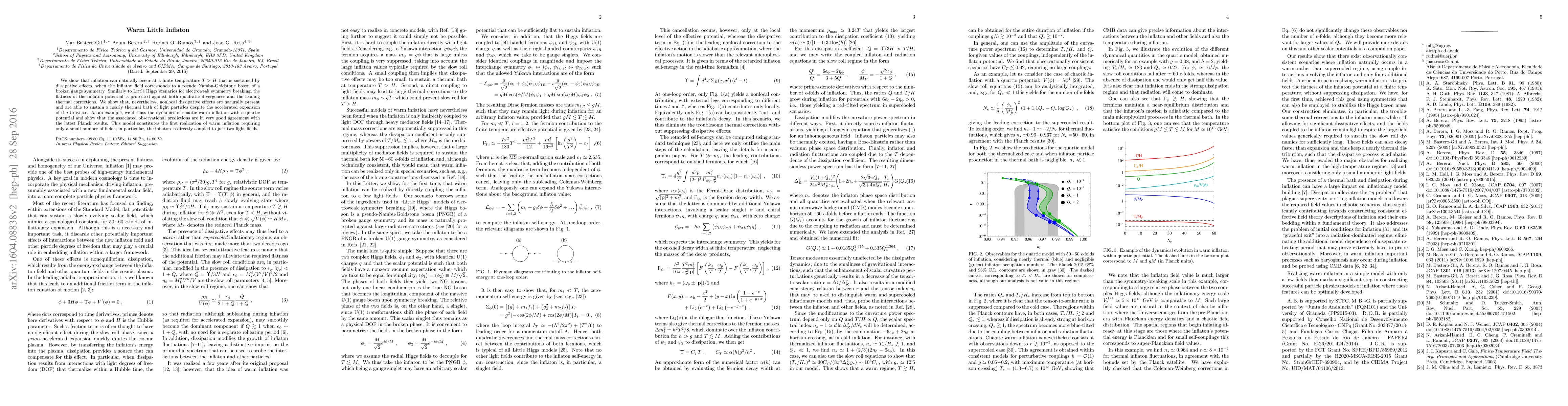 Research shows that inflation can occur at finite temperature, sustained by dissipative effects, without quadratic divergences, using a pseudo Nambu-Goldstone boson scenario. The model predicts good agreement with Planck results for chaotic warm inflation requiring only two light fields.