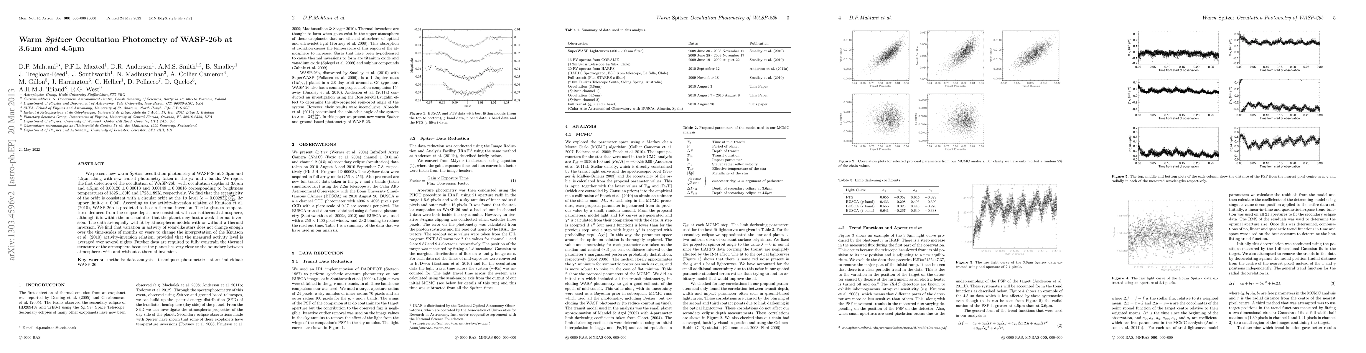 The research utilized warm Spitzer occultation photometry at 3.6µm and 4.5µm along with new transit photometry in g, r, and i bands for WASP-26b.