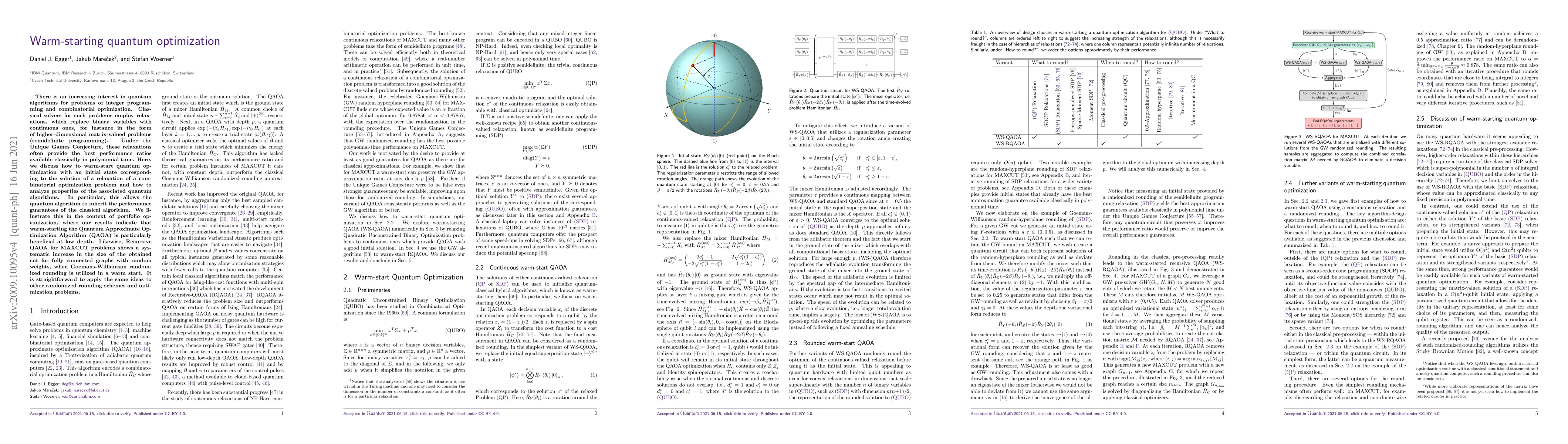 This paper explores how to warm-start quantum optimization algorithms using classical relaxations, demonstrating that quantum algorithms can inherit performance guarantees from their classical counterparts. The study shows that warm-starting the Quantum Approximate Optimization Algorithm (QAOA) enhances performance in portfolio optimization, particularly at low depths, and improves results for MAXCUT problems when combined with Goemans-Williamson randomized rounding.